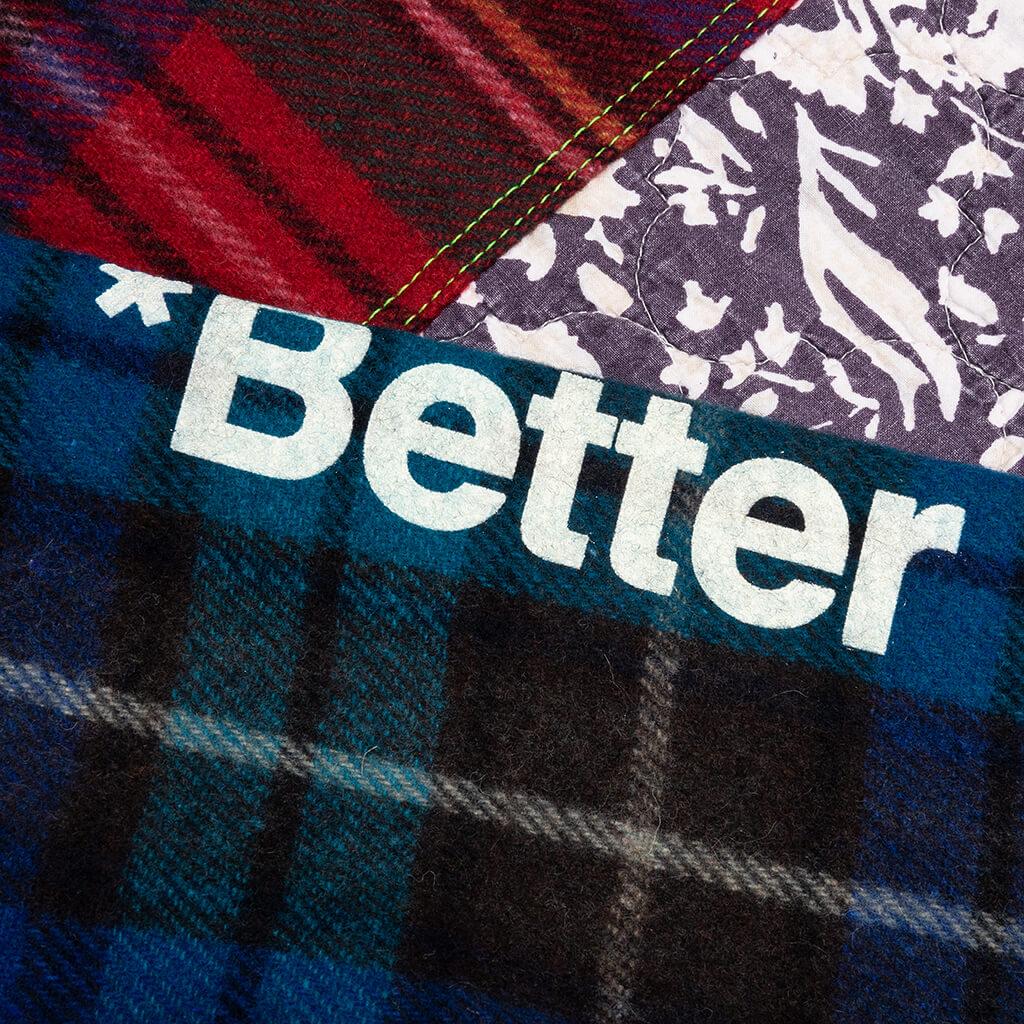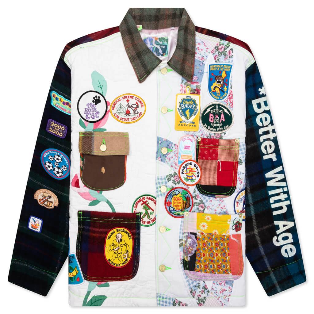 The Better With Age Gentleman's Blanket Jacket makes a statement with its unique vintage construction. Better With Age is known for its outsourced vintage garments that are handpicked by its team. Due to this process, each piece is a one-of-a-kind design. The Gentleman's Blanket Jacket is specifically constructed from vintage blankets of varying materials and patterns. Due to its unfamiliar origin, the garment may display stains, blemishes, wear, or general signs of age. The jacket has been measured and resized to account for size variance due to age. These imperfections are representative of the brand’s commitment to sustainability. THIS PRODUCT DOES NOT QUALIFY FOR DISCOUNTS OR SPECIAL PROMOTIONS, ALL SALES ARE FINAL. 1 of 1 garment Made from vintage blankets Pieced together Button closure Chest pockets Button cuffs Style No: BWAJGB-MUL-2