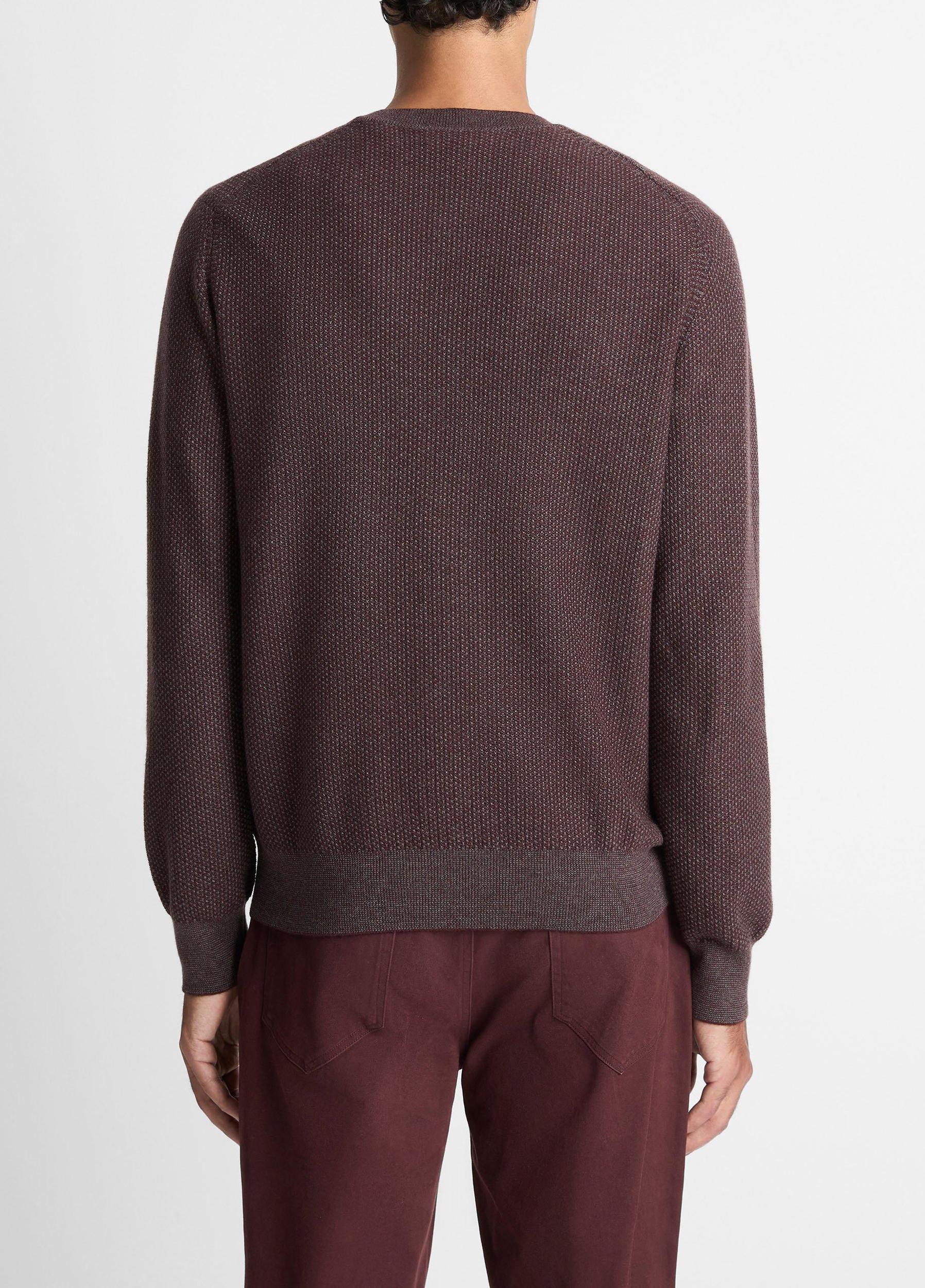 Soft and textural, this classic crew neck sweater is jacquard-knit in a geometric pattern using a luxe blend of wool, cotton and cashmere.