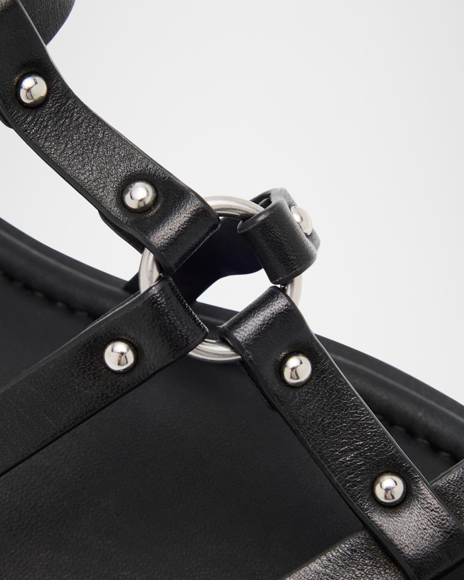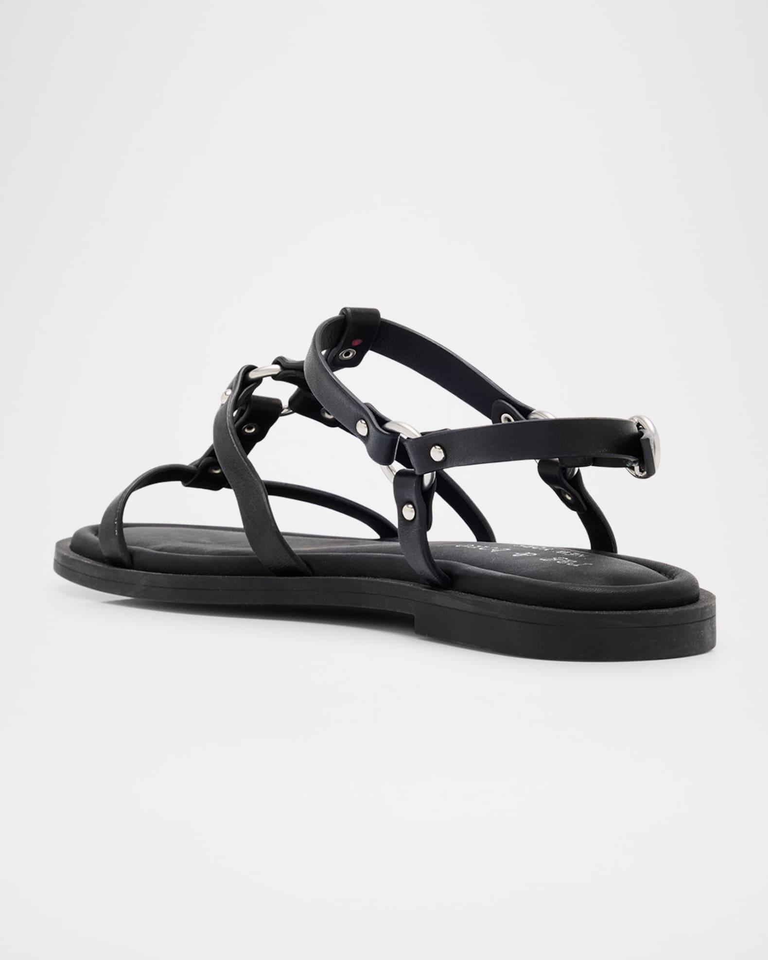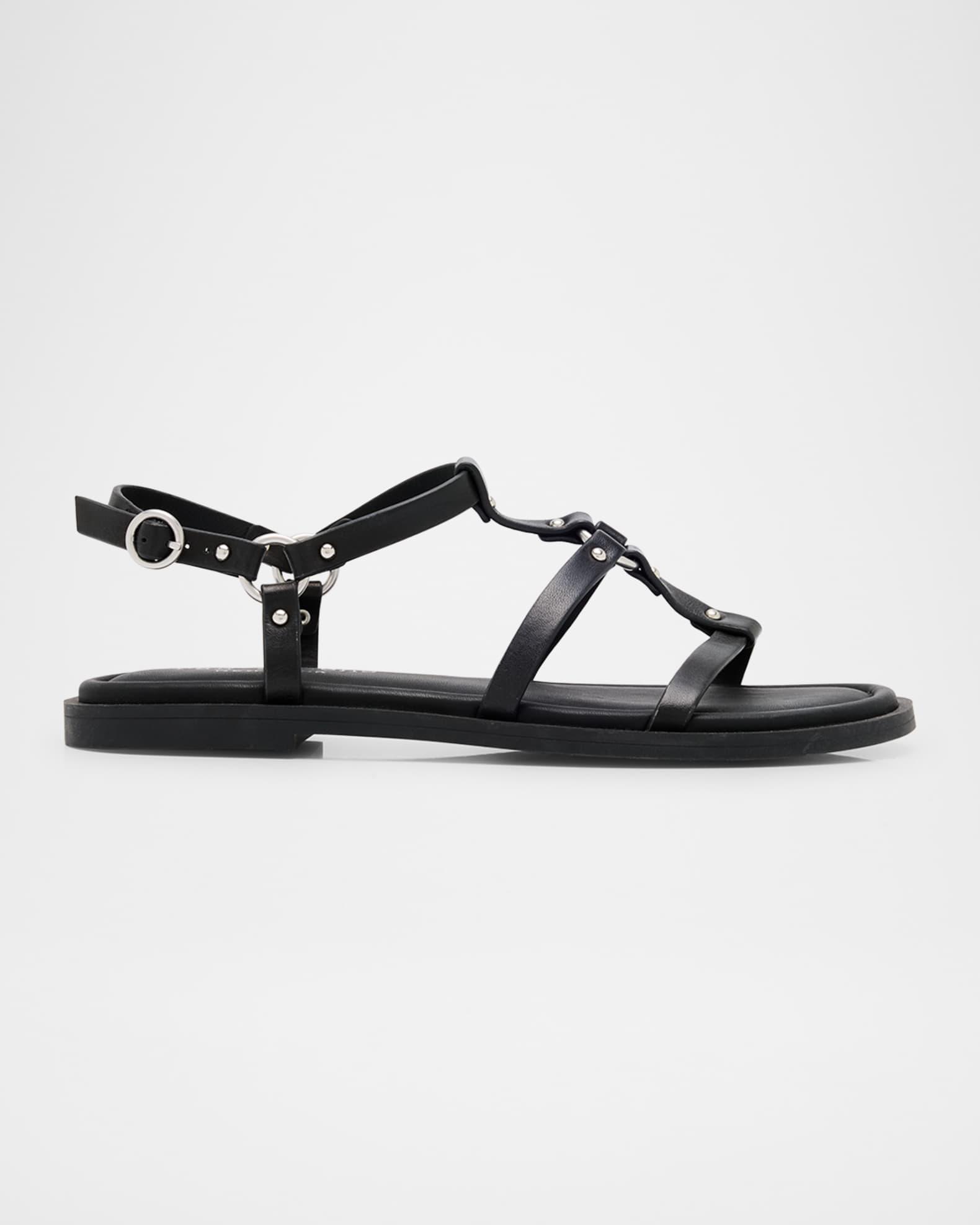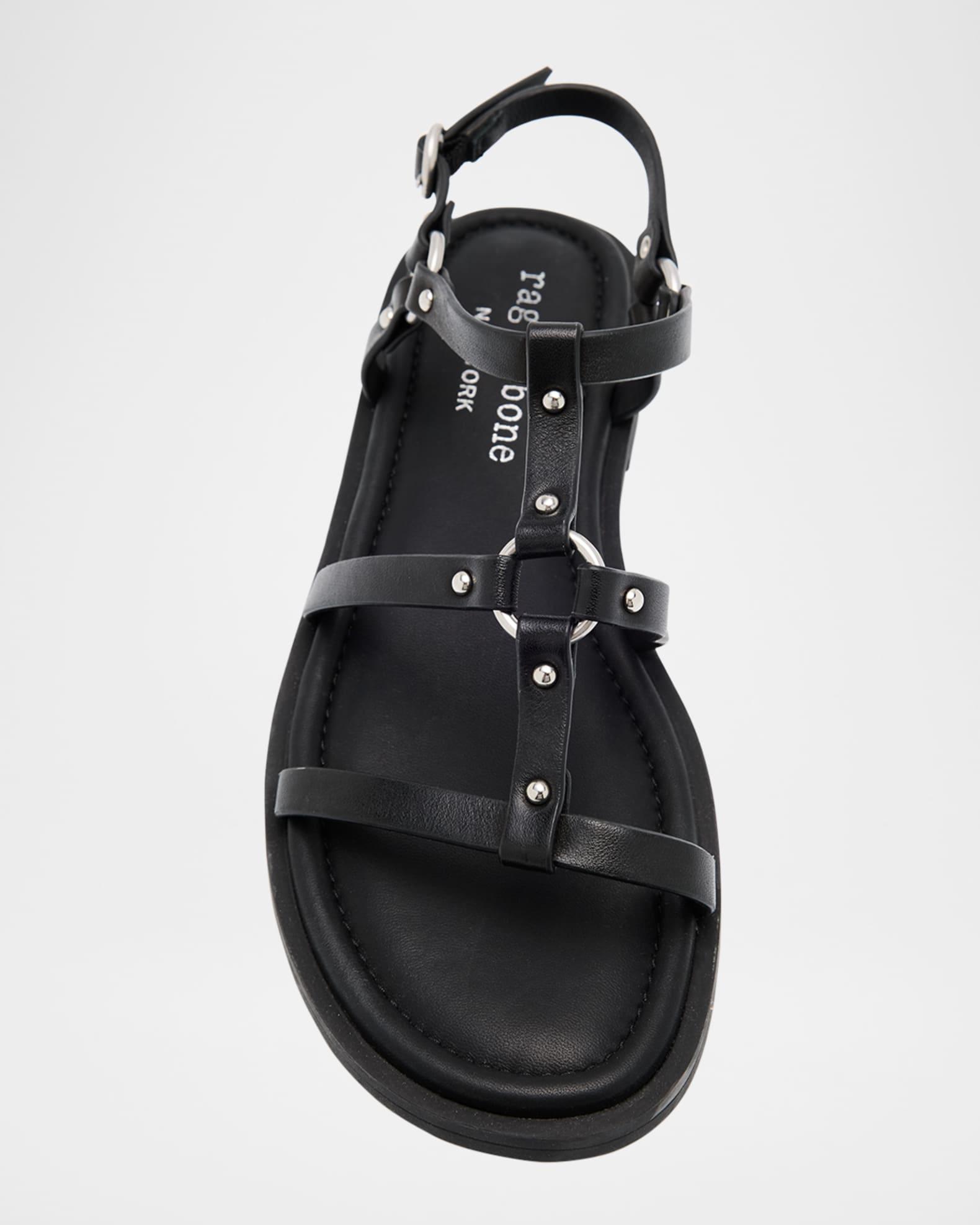 Rag & Bone "Geo" sandals in calf leather with silver-tone stud and ring accents 0.50 in / 15 mm flat heel Open toe Harness strap vamp Adjustable ankle strap OrthoLite® footbed Lightweight, sturdy TPU outsole Lining: Leather Spot clean Imported Shipping Direct from Vendor, usually ships within 7 business days.