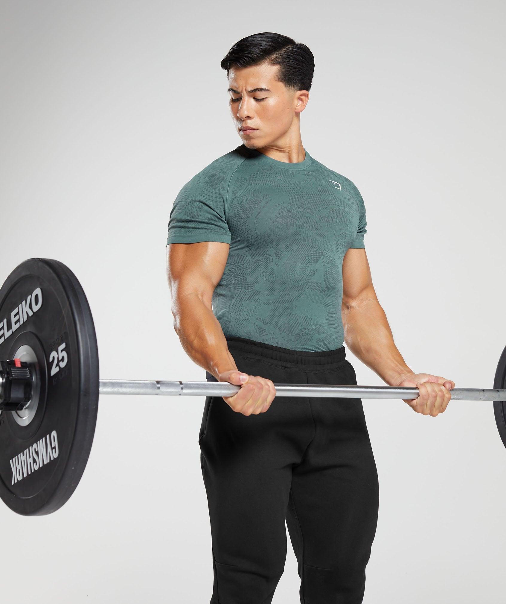 - Slim fit- All-over mesh structures- Lightweight material- Jacquard camo pattern- Sweat-wicking- Raglan sleeves- Heat-sealed Gymshark logo to chest and wordmark to centre back- 73% Polyester, 27% Nylon- Model is 6'0" and wears size M- SKU: A5A2D-UB1W