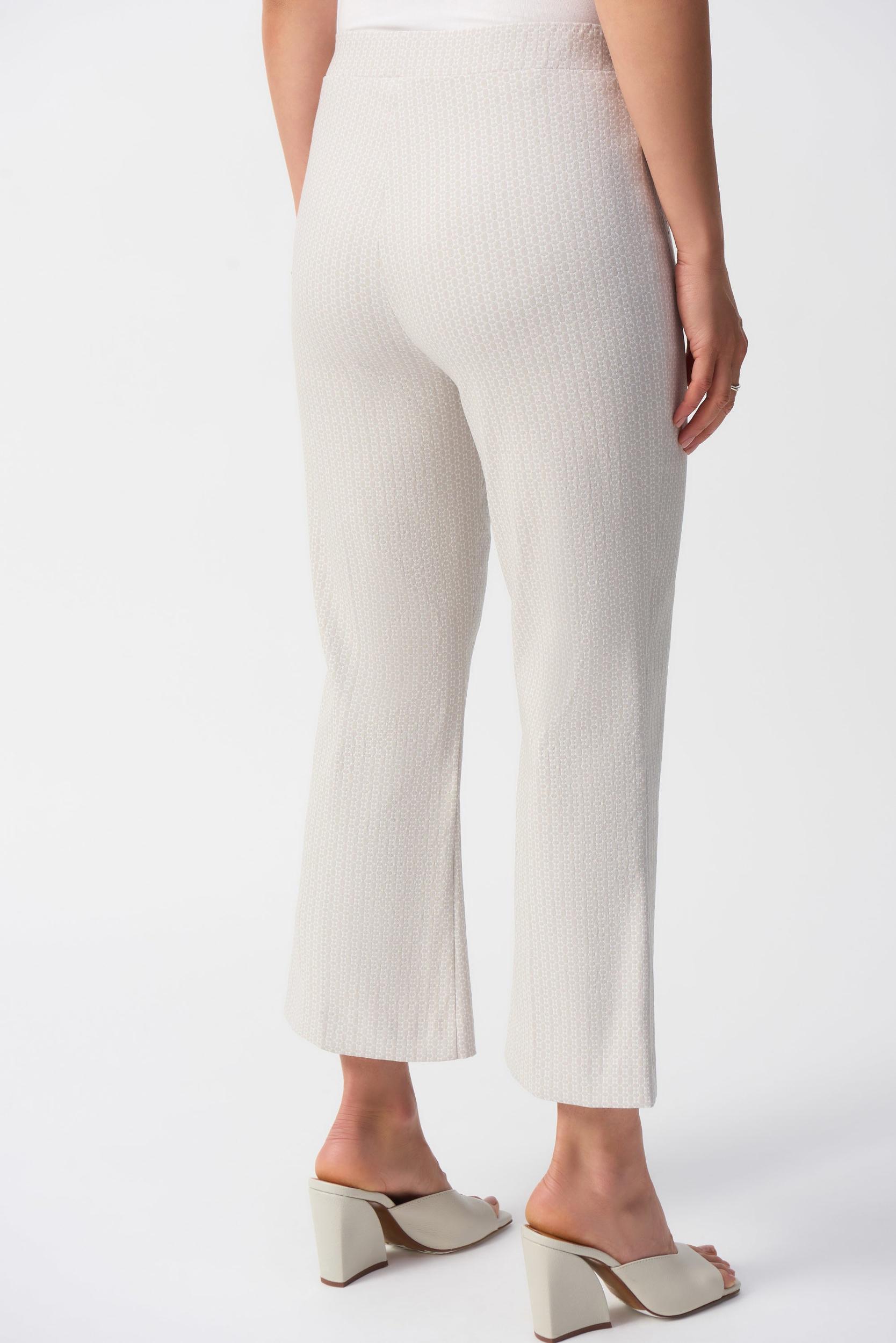 The flared silhouette of these pull-on pants exudes flawless sophistication. The jacquard fabric, adorned with a beautiful geometric print, gives a polished look to this contemporary design. The garment is crafted with a covered elastic waistband with your utmost comfort in mind.