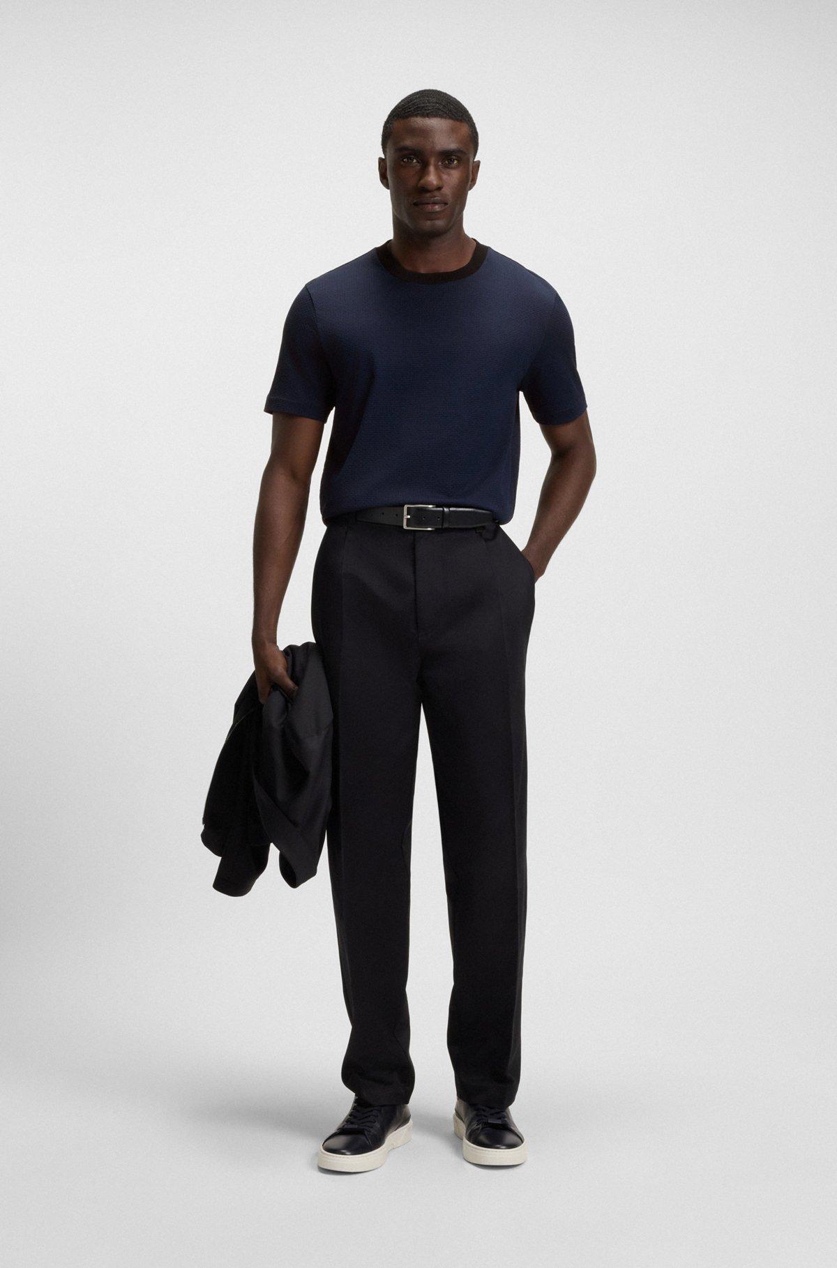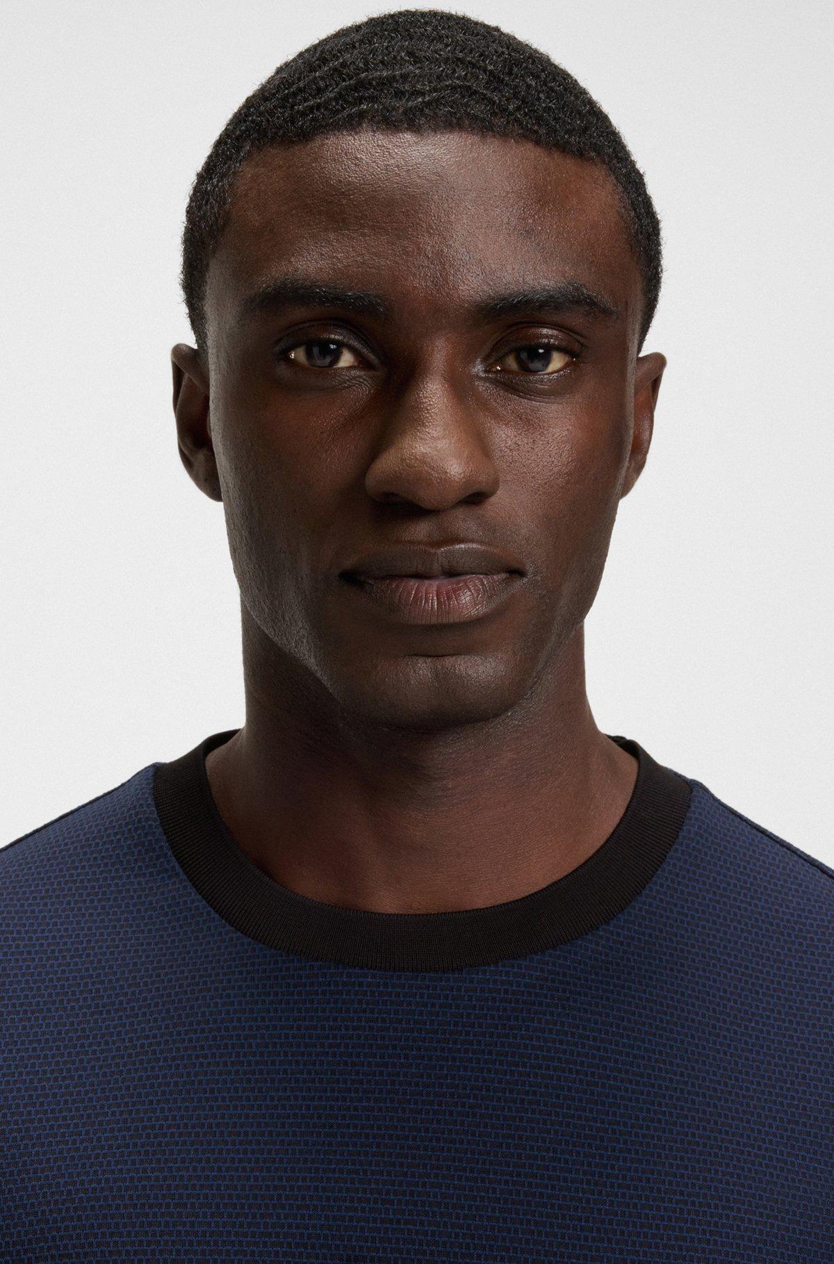 Geometric-jacquard T-shirt in mercerised cotton
