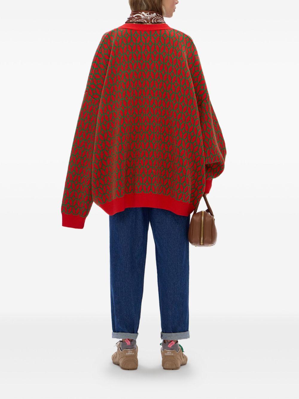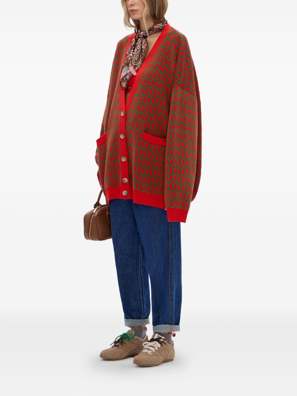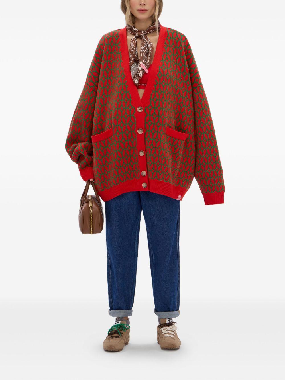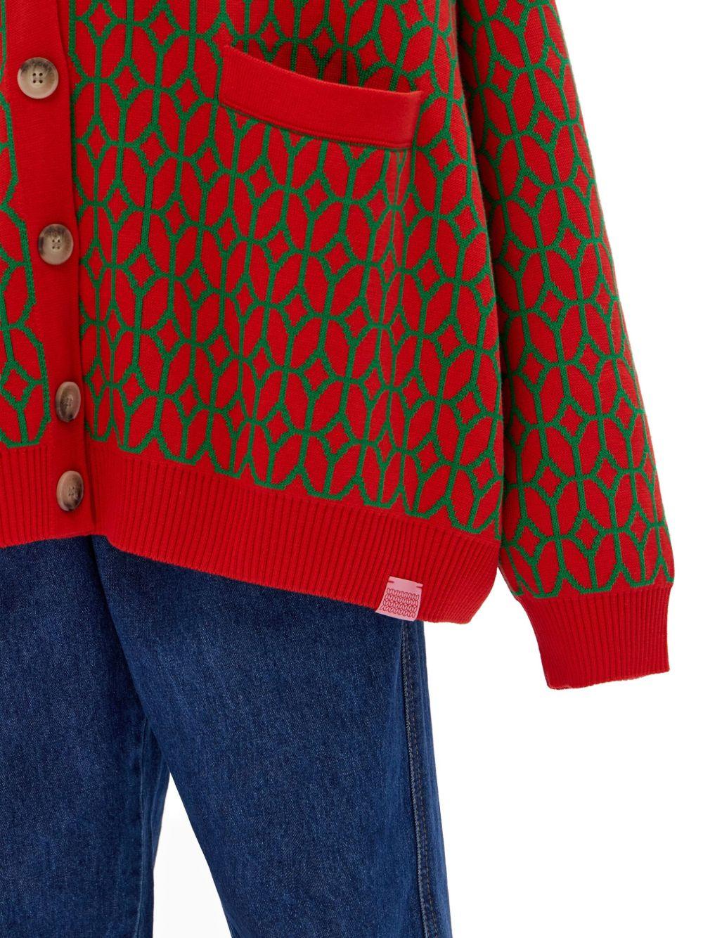 MONOCHROME geometric-pattern cardigan | Red | red | geometric pattern | button fastening | V-neck | welt pockets | long sleeves | Acrylic/Cotton | Cardigans | Knits | Clothing | Women | Cardigans | Sweatshirts & Knitwear | Clothing | Men
