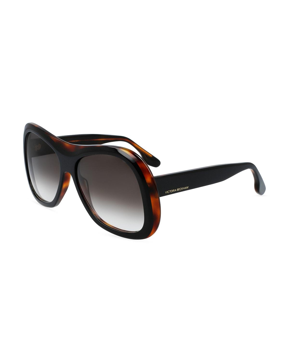 From the Sulptural collection. Bold tortoise frames define these oversized shield sunglasses, detailed with signature logo at temples. 100% UV protection Gradient lenses Case and cleaning cloth included Acetate Made in Italy SIZE 59mm lens width 16mm bridge width 145mm temple length. Soft Accessories - Sunglasses > Victoria Beckham > Saks Fifth Avenue > Barneys. Victoria Beckham. Color: Havana.