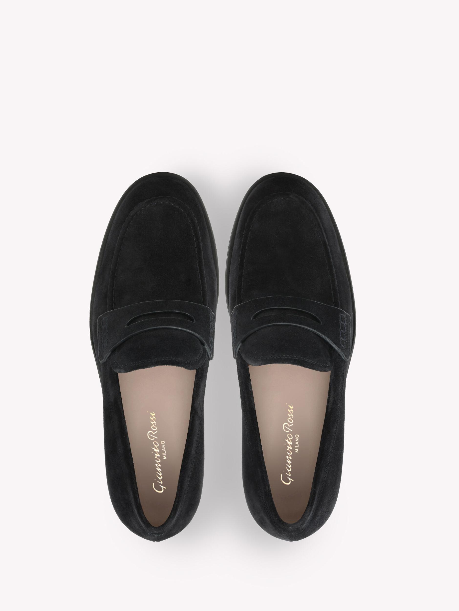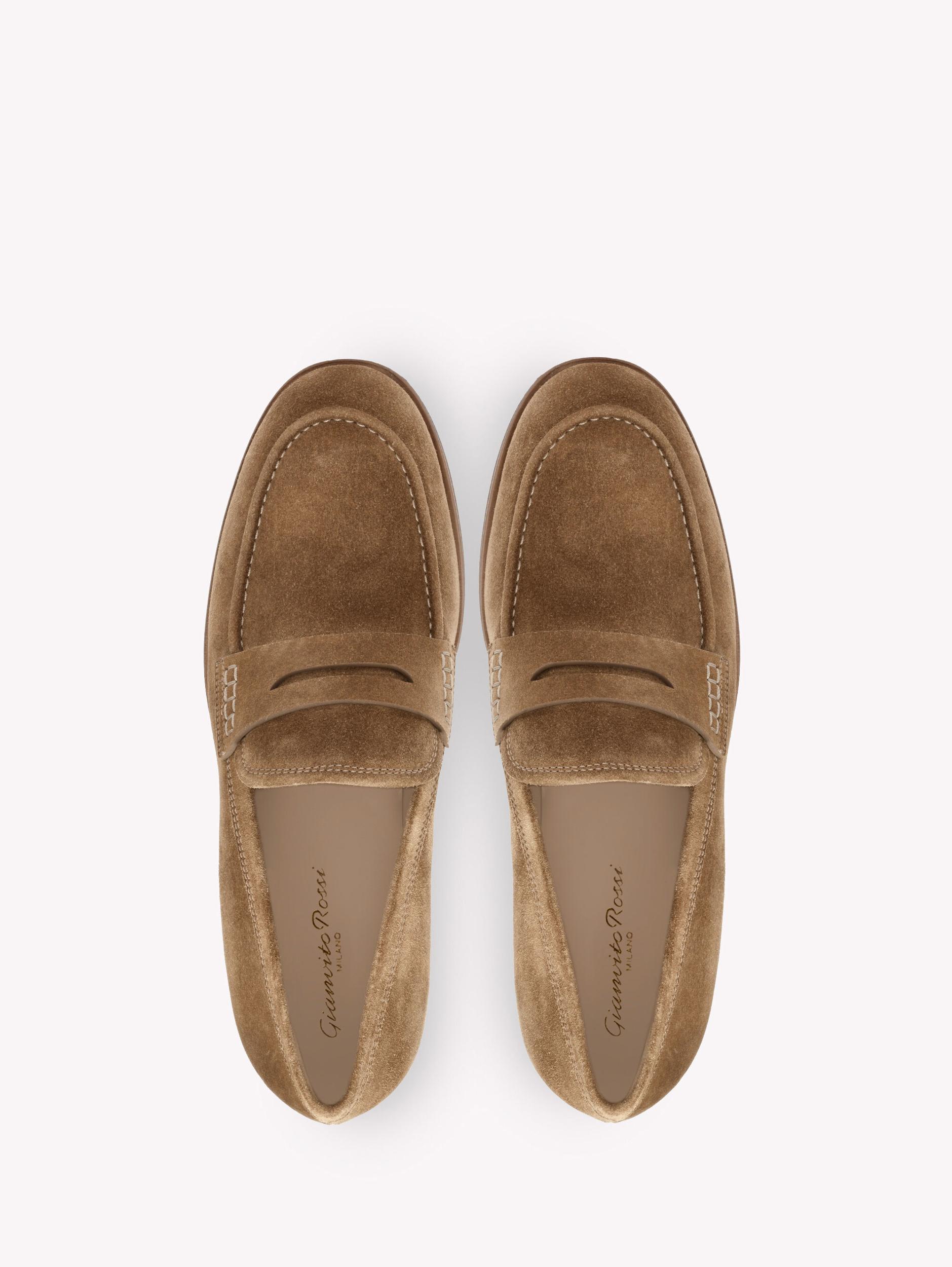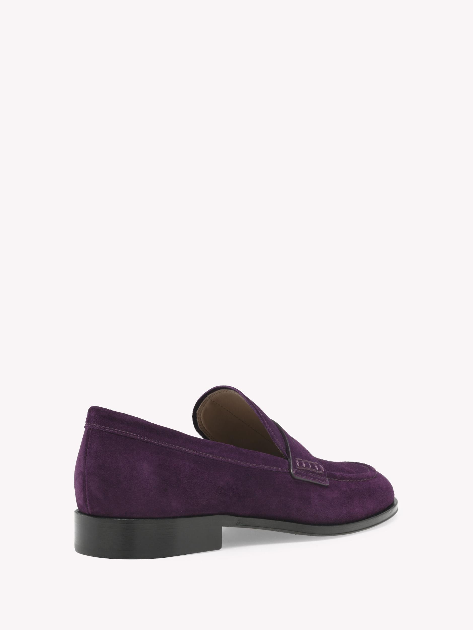 Finely distinguished by a front penny bar, George is a supple suede moccasin with a round toe and a 20mm stack heel. Handmade in Italy.