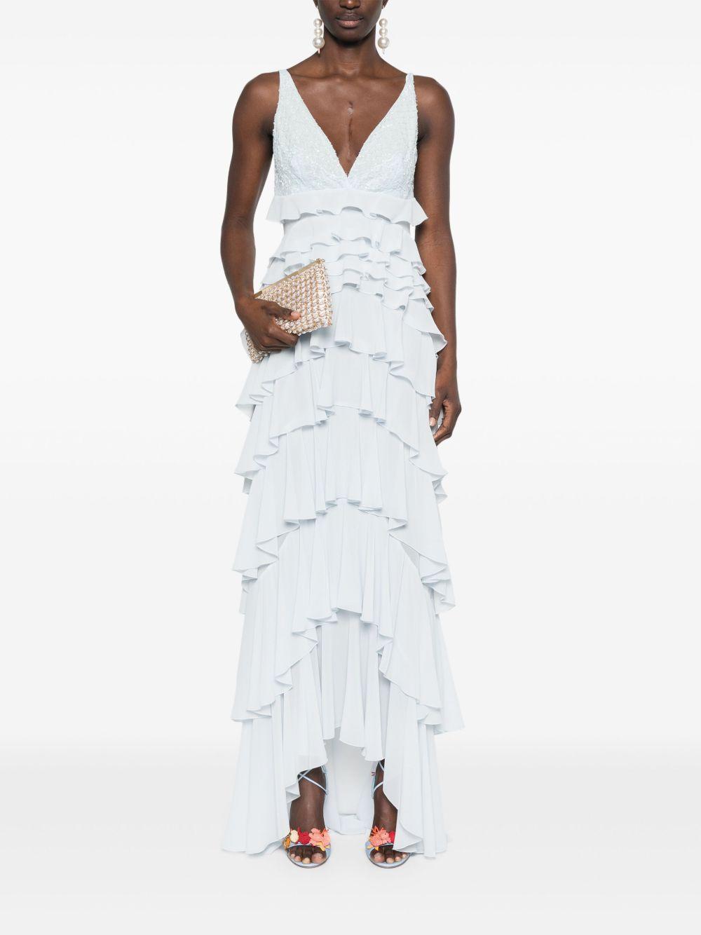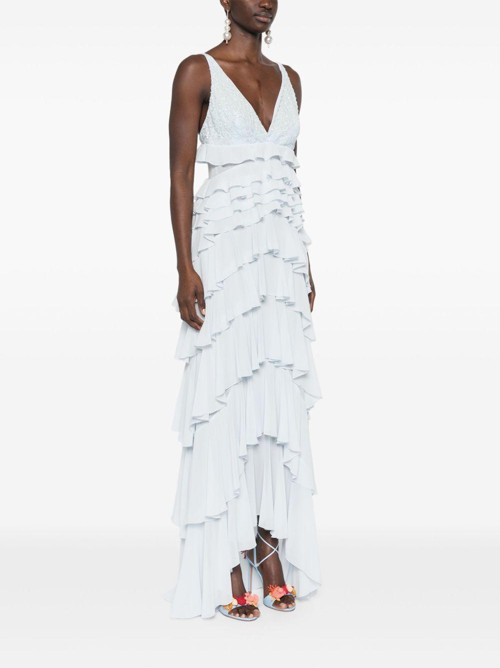 Elisabetta Franchi georgette tiered gown | Blue | Polyester/Polyamide/glass | Evening Dresses | Dresses | Clothing | Women