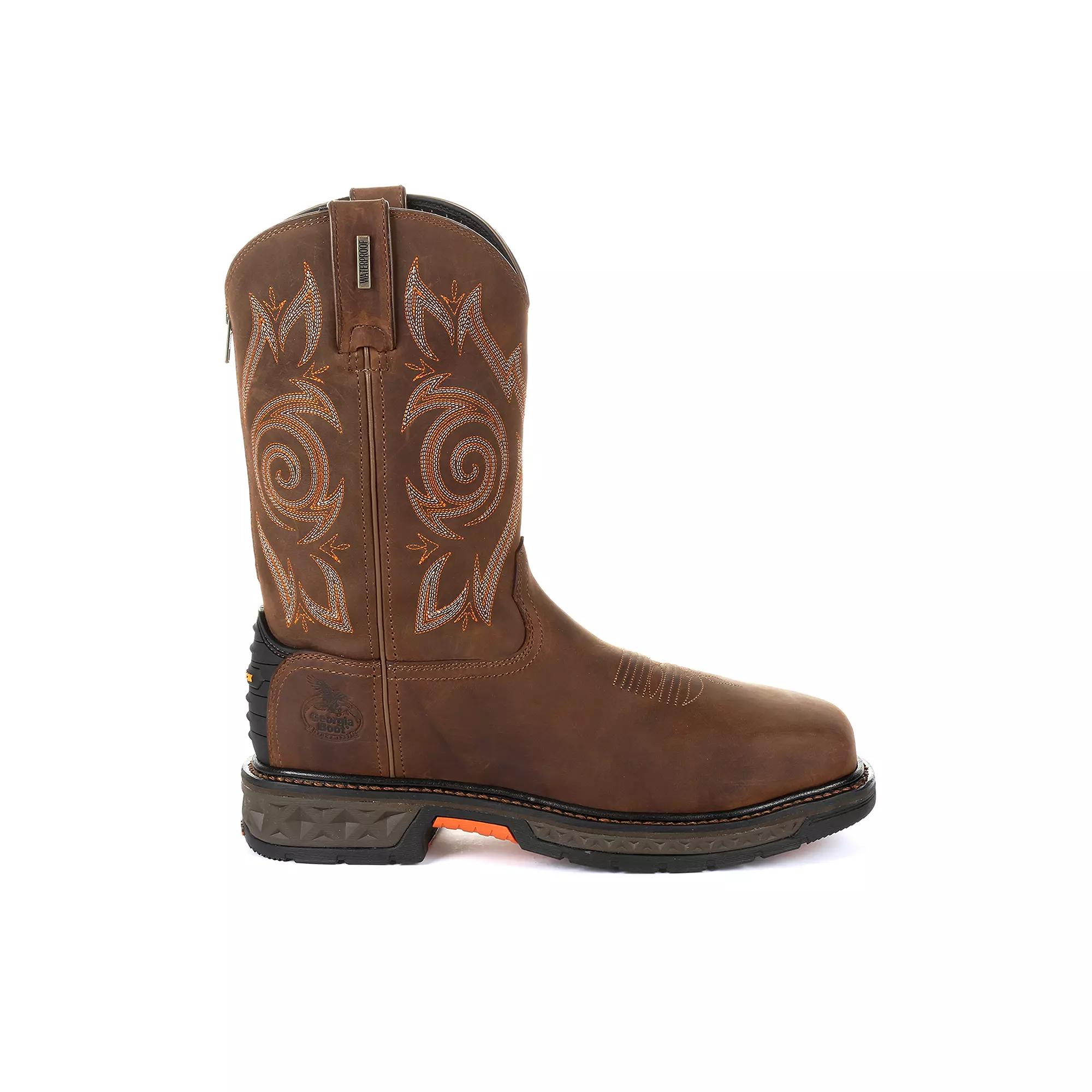 Get the job done right with these mens Georgia Boots Carbo-Tec LT waterproof steel toe work boots.Click this FOOTWEAR GUIDE to find the perfect fit and more!BOOT FEATURESGeorgia waterproof systemFull-grain leather upperErgo-Fit safety toe designed to match contours of feet, providing superior comfort and flexibilityFiberglass shankOil-, chemical-, abrasion-, heat-, and slip-resistant rubber outsoleASTM F2413 protective toe classificationASTM F2413 electrical hazard standardHeel-stabilizing Counter LockQuick Response Polyurethane foam removable insoleBOOT CONSTRUCTIONLeather upperMesh liningEVA midsoleRubber outsoleBOOT DETAILSSquare toeZipper, pull-onPadded footbed11-in. shaft15-in. circumference Size: Medium (9). Color: Brown. Gender: male. Age Group: adult.