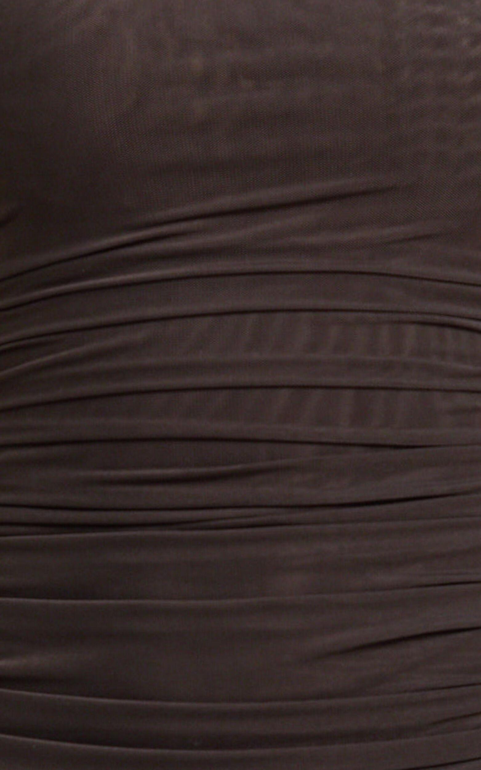 Georgia Maxi Dress - Mesh One Shoulder Ruched Bodycon Dress in Chocolate