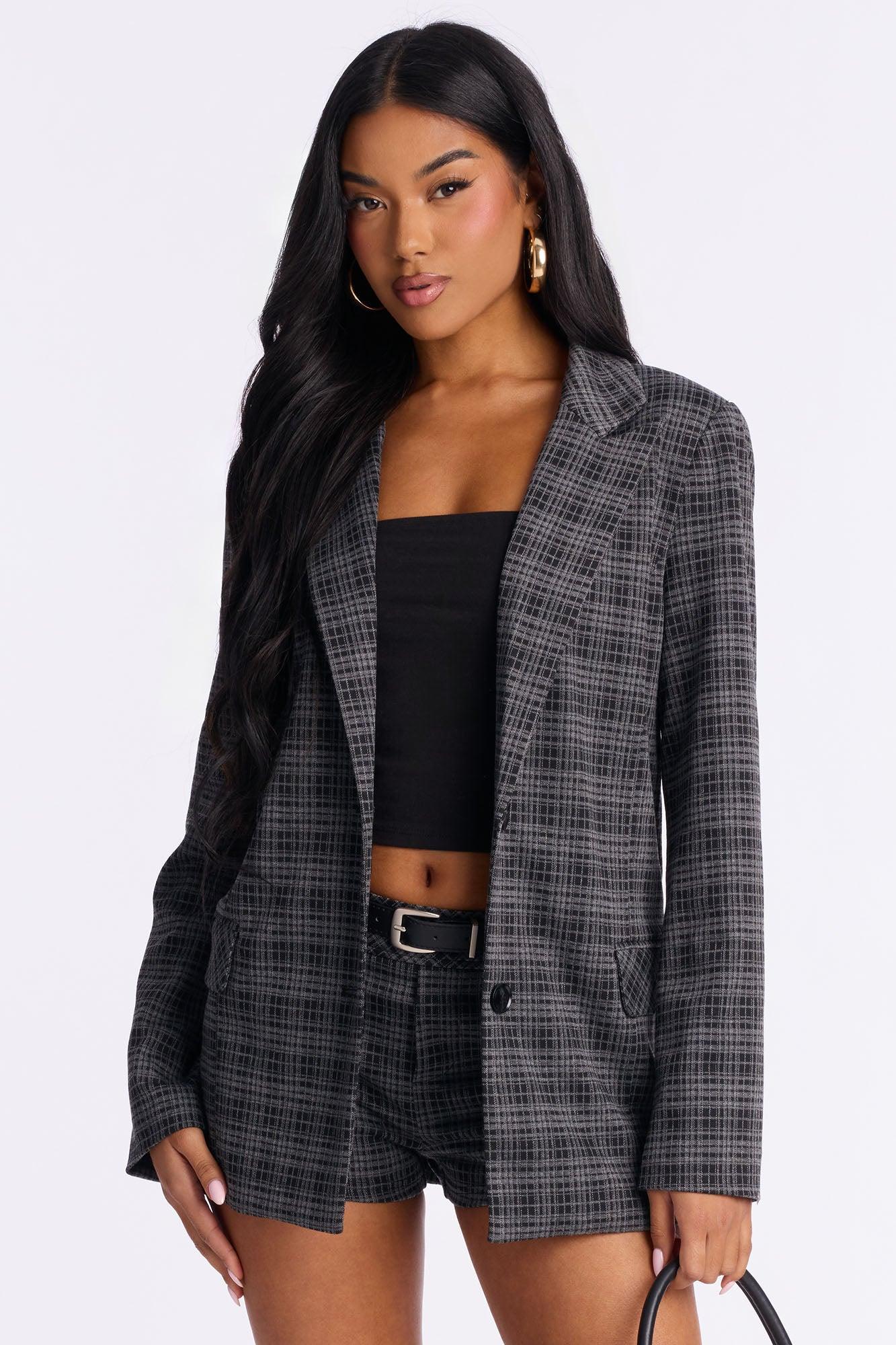 Georgina Plaid Blazer Short Set - Black Female