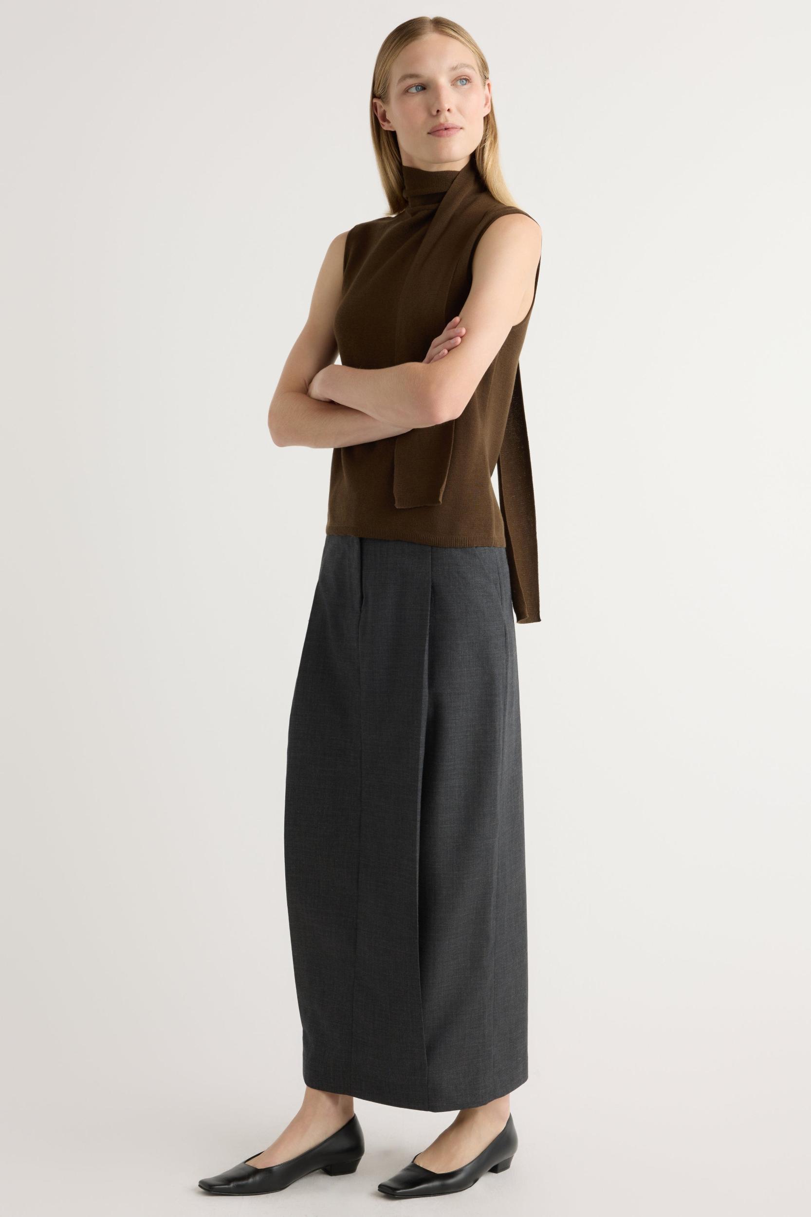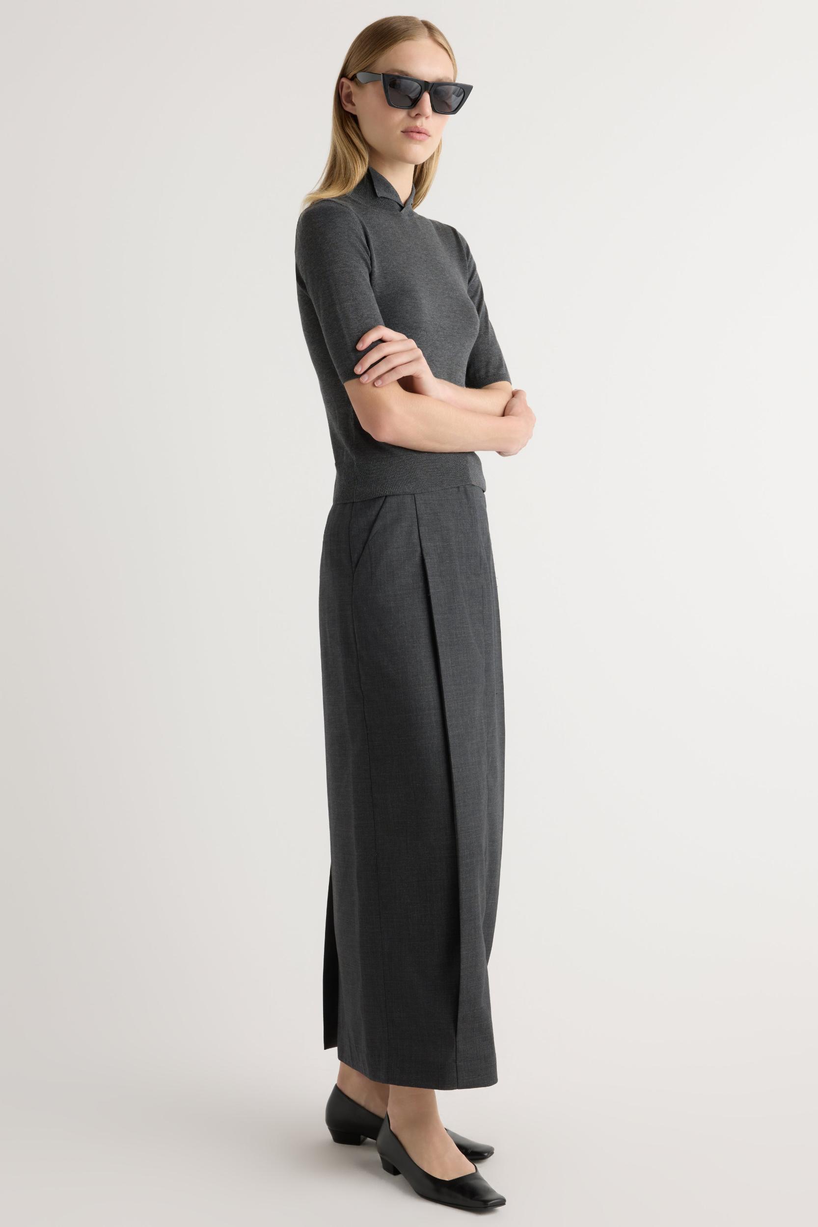 A streamlined update to the classic maxi skirt — in a structured silhouette with a chic wrap front, tailored details and pockets, Georgina pairs effortlessly with an easy t-shirt or cardigan for elevated approach to everyday dressing.
