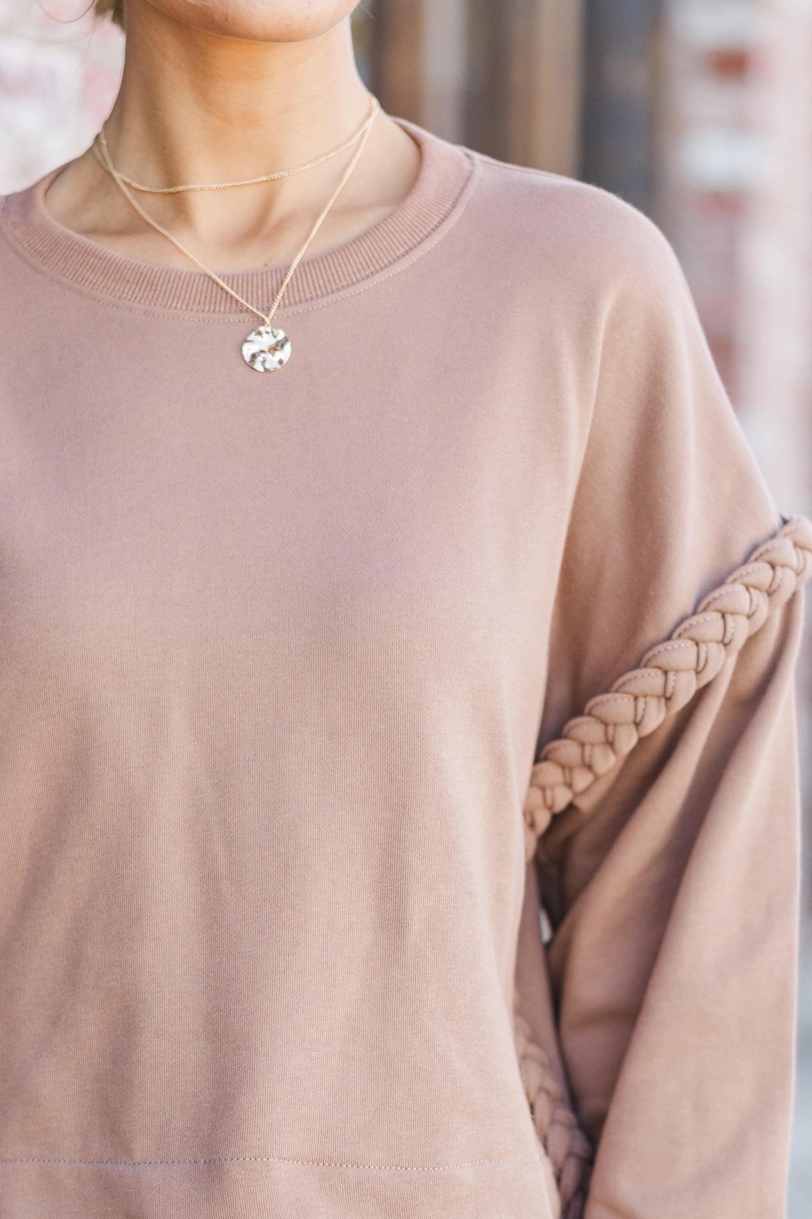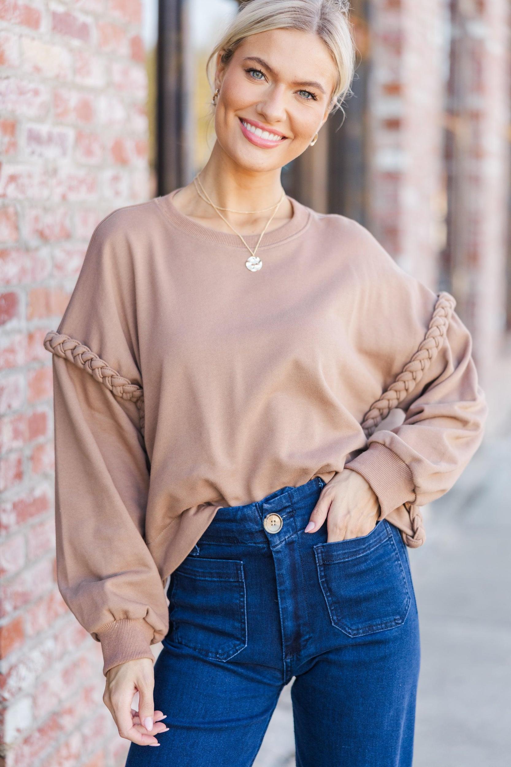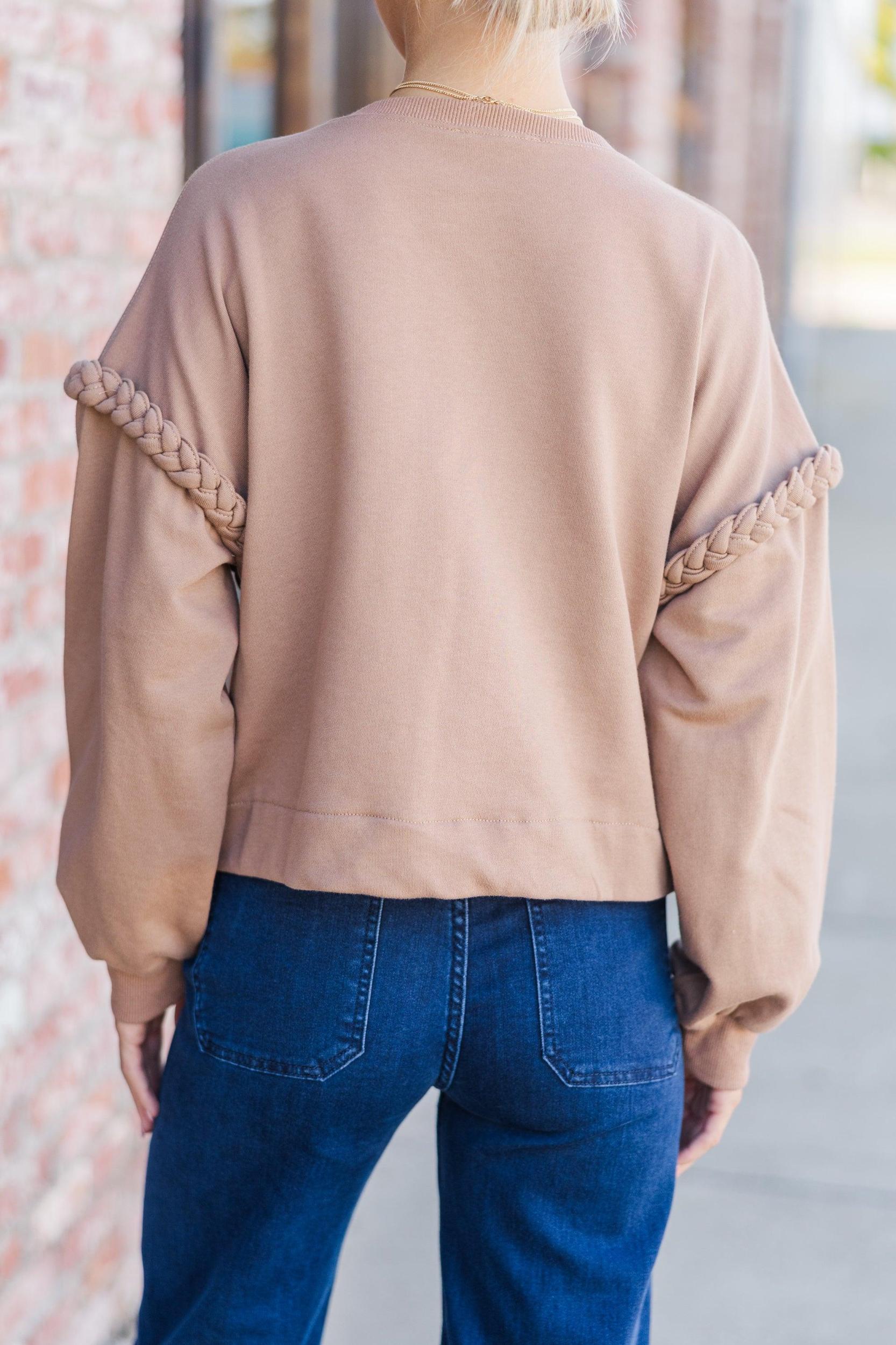 When you wear this cozy sweater you will have the glow only a effortlessly chic outfit can bring! The braded detailing around the drop shoulders is so cute and gives this sweater the perfect amount of detail. The neutral coloring also makes it easy to style! Round neckline Long bubble sleeves Drop shoulders with braided detailing Generous detailing Baileigh is wearing the small.