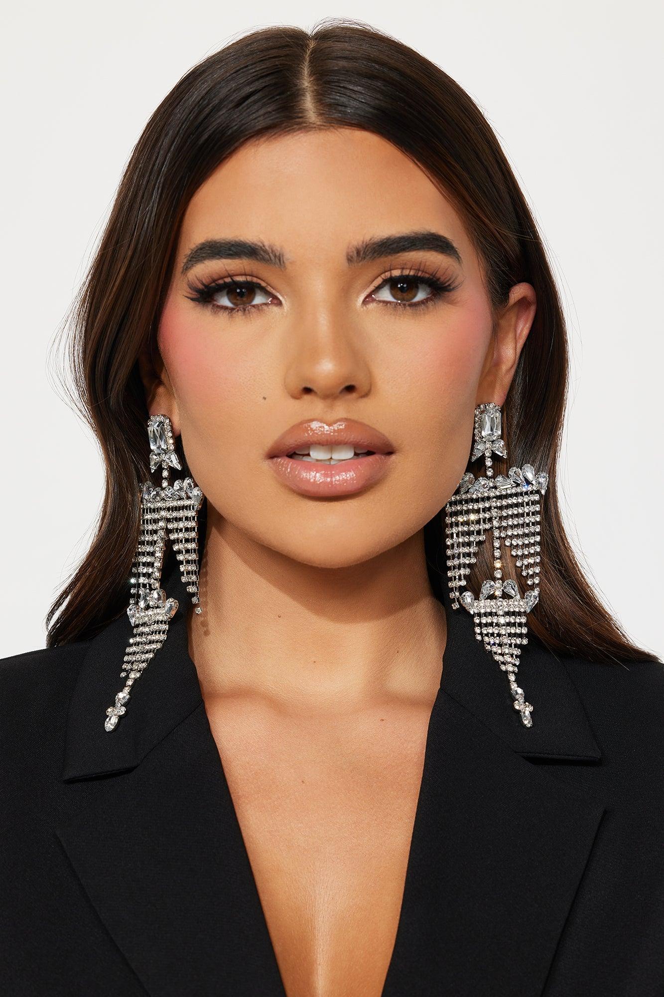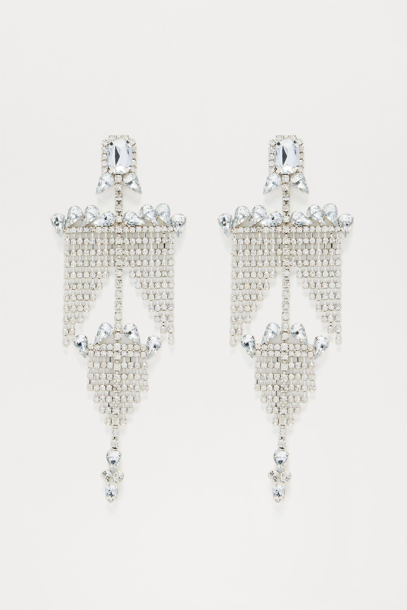 Available In Silver. Drop Earrings Post Back Closure Rhinestone Detail Final Sale Imported California Proposition 65 WARNING: Cancer and Reproductive Harm - www.P65Warnings.ca.gov.