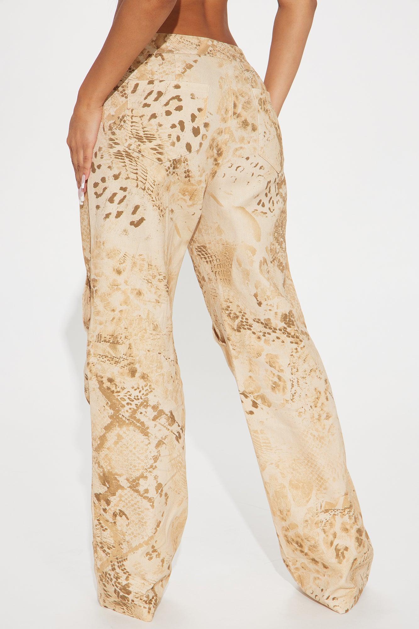 Available In Taupe/combo. Wide Leg Pant Mid Rise Button & Zip Closure Back Pockets Strap Detail 32" Inseam Disclaimer: Print Placement Will Vary. Non Stretch, 100% Cotton Imported California Proposition 65 WARNING: Cancer and Reproductive Harm - www.P65Warnings.ca.gov.