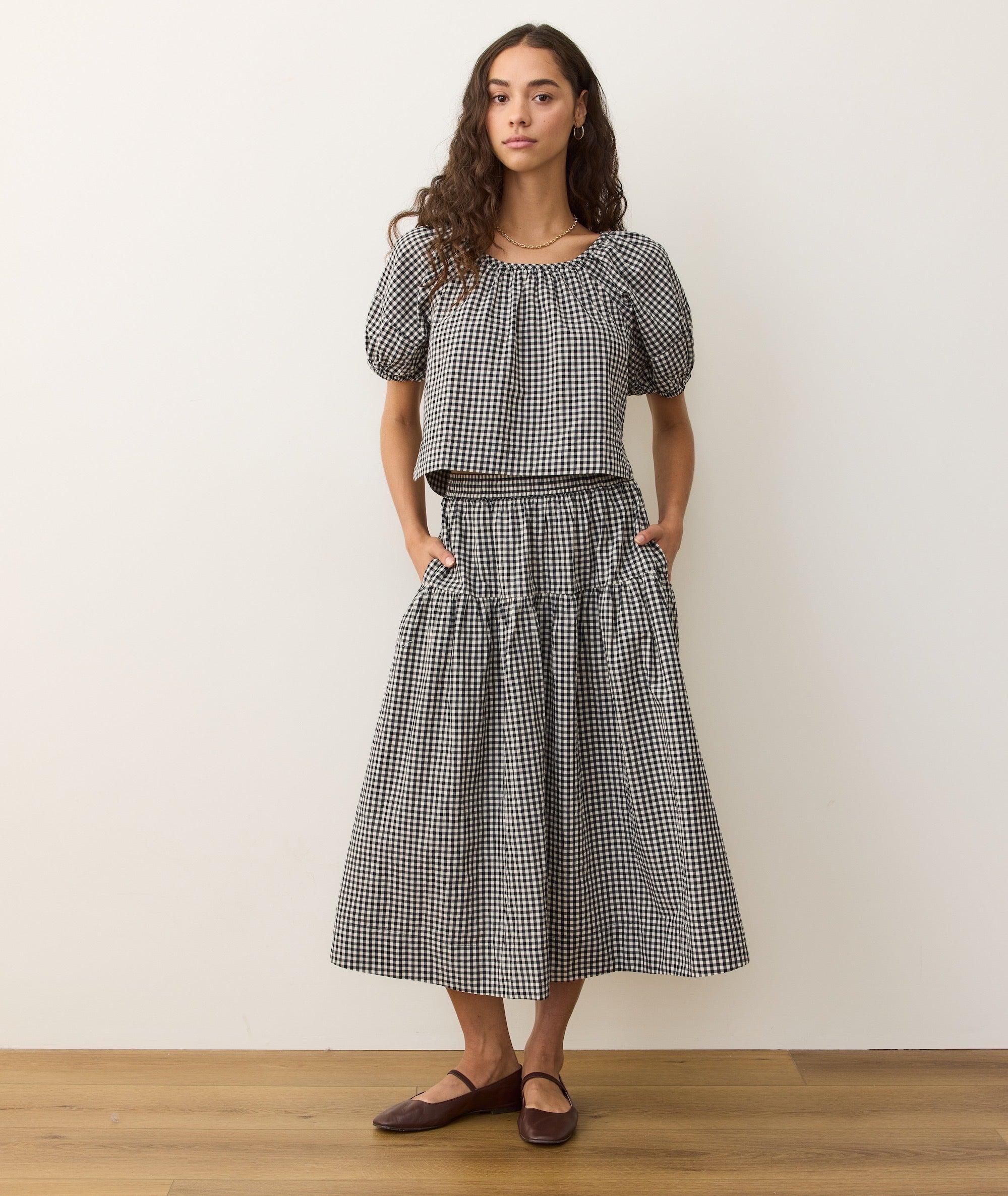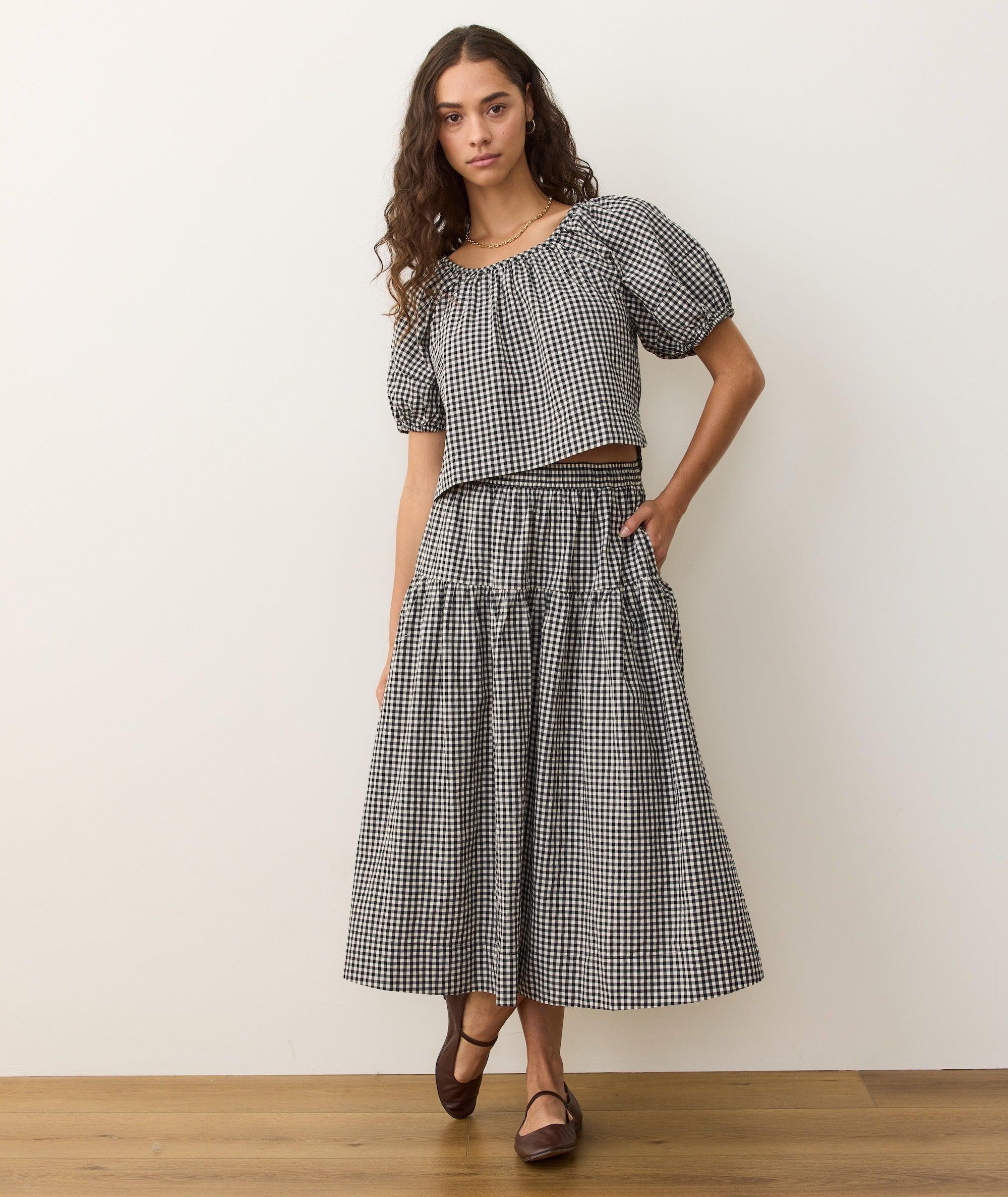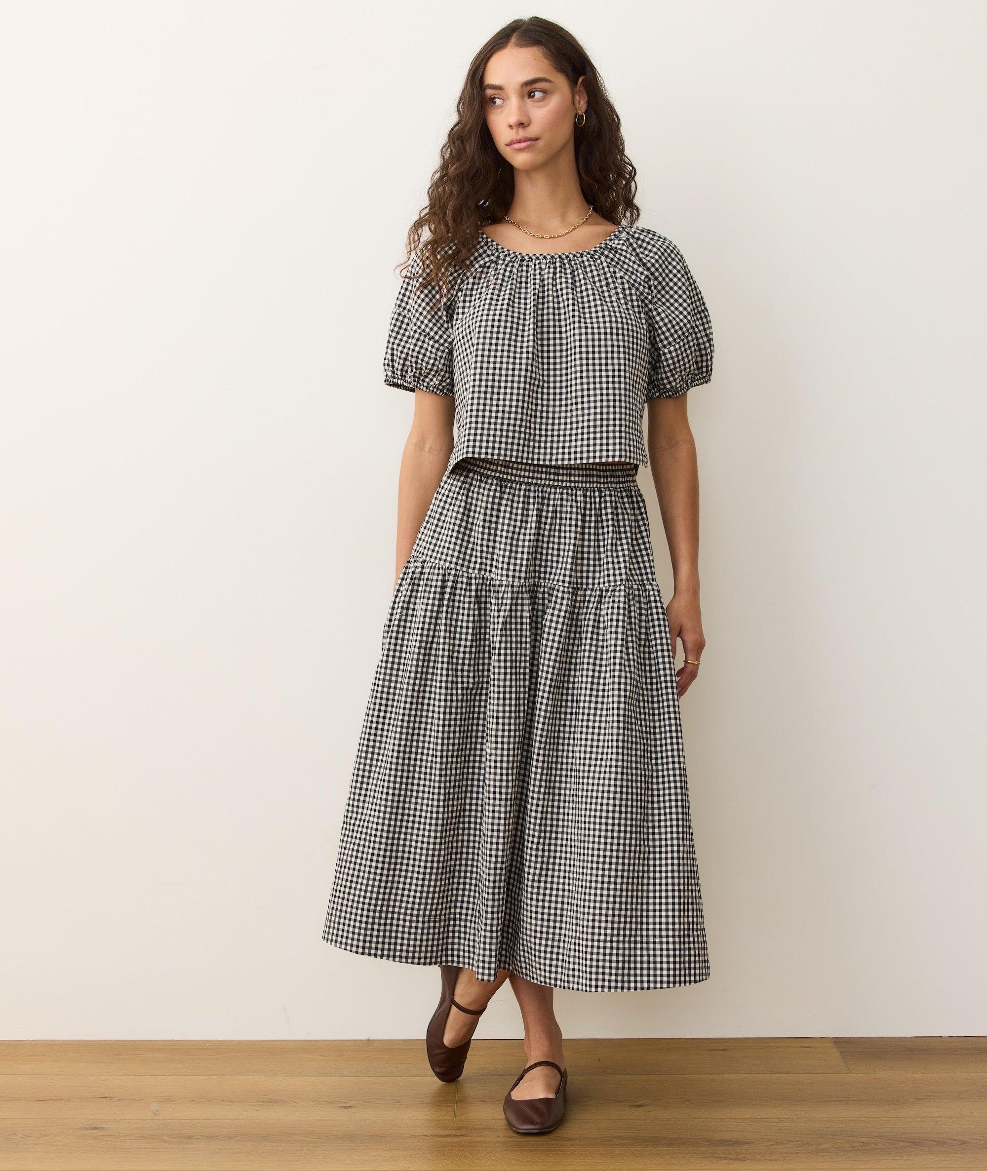 The perfect transitional pattern, easy elastic waist, and effortless, packable poplin? Skirts don’t really get much easier than that. Plus it’s made to mix or match with just about anything from our denim and gingham collection this fall. You really can’t go wrong.