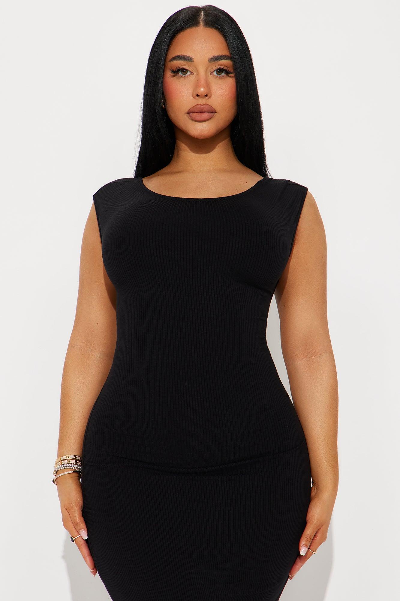 Giana Backless Ribbed Midi Dress - Black