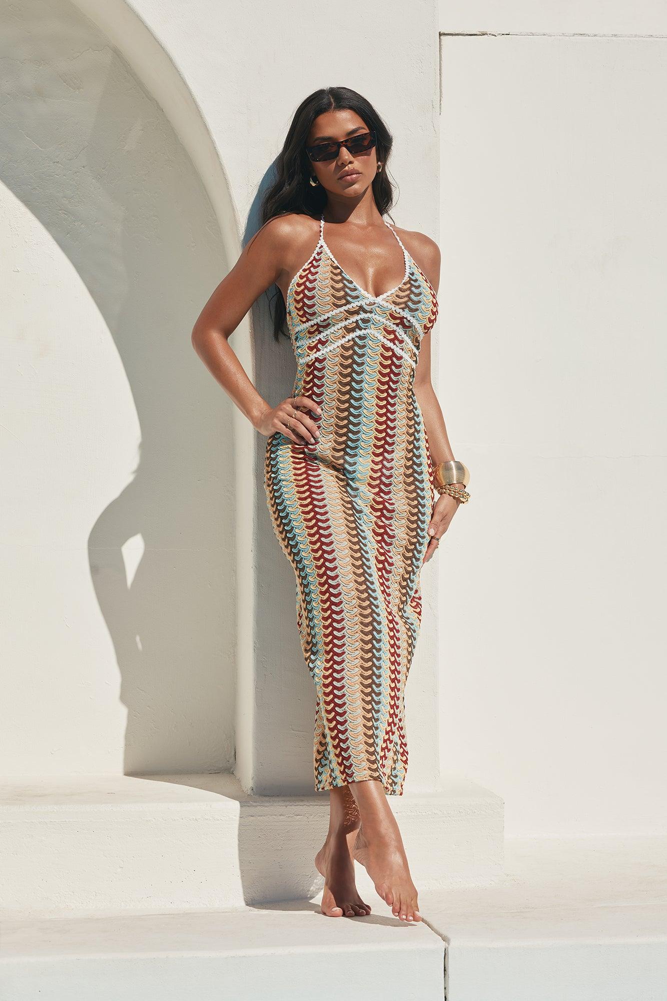 Gianna Crochet Cover Up Maxi Dress - Blue/combo