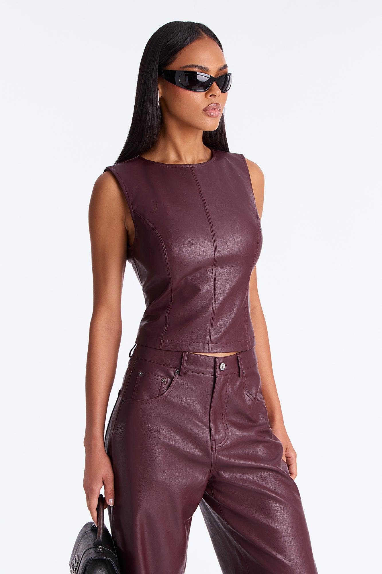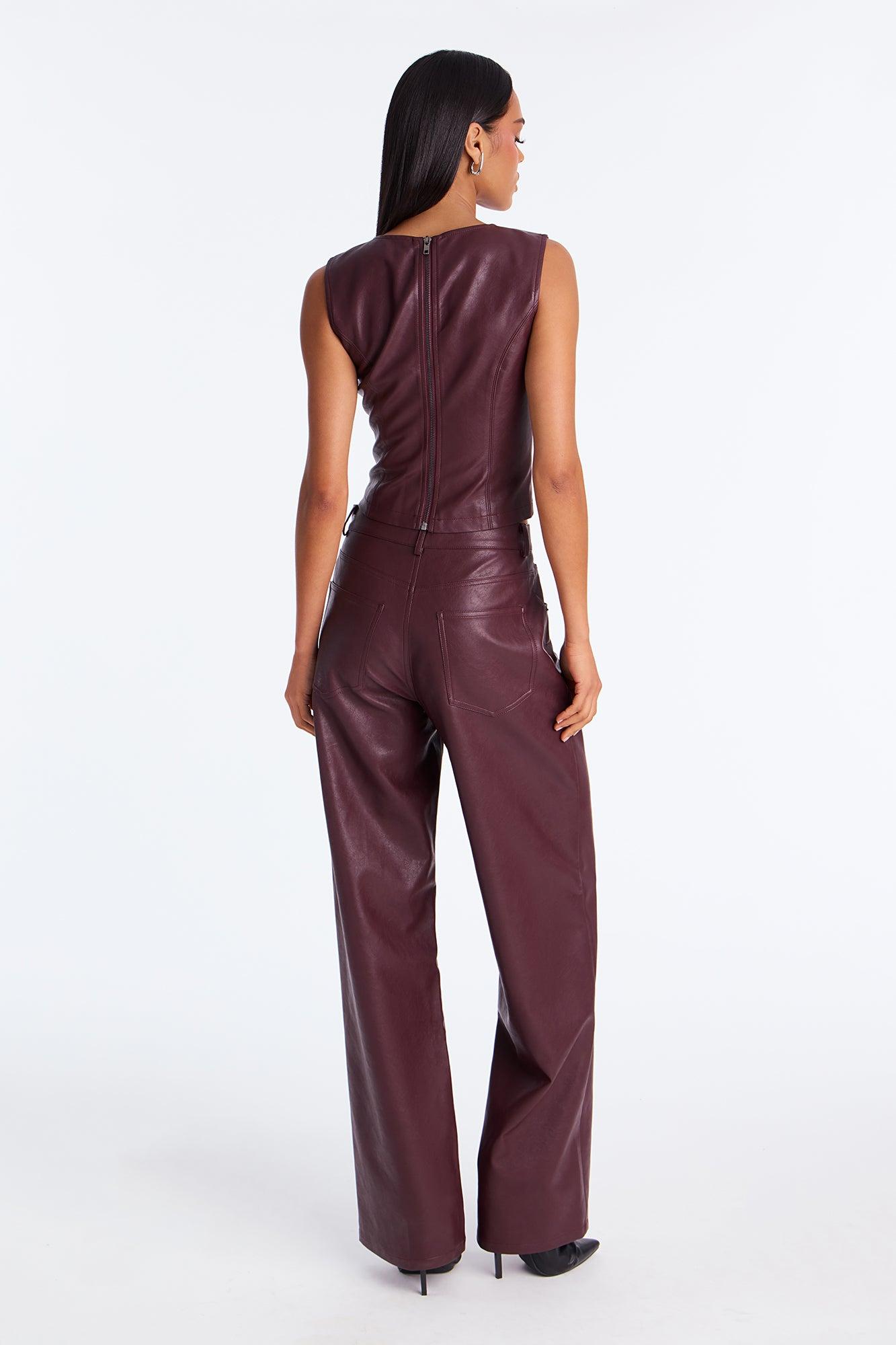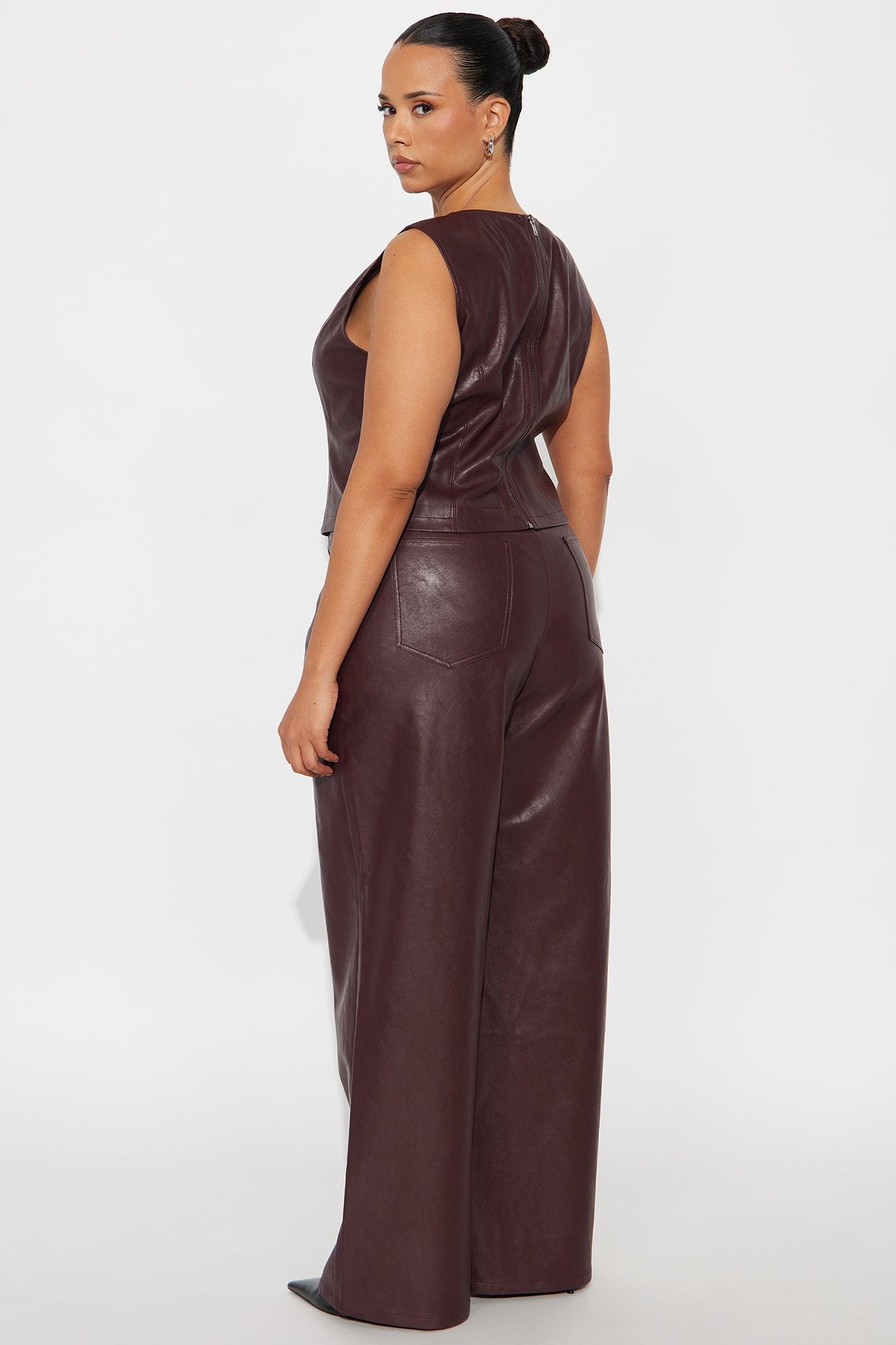 Available In Olive And Plum. 2 Piece Ensemble Tank Top And Wide Leg Pant Set Stretch 33.5" Inseam Front Button And Zipper Pant Closure Pockets Self: 55% Polyester 45% Polyurethane Lining: 100% Polyester Imported California Proposition 65WARNING: Cancer and Reproductive Harm - www.P65Warnings.ca.gov.