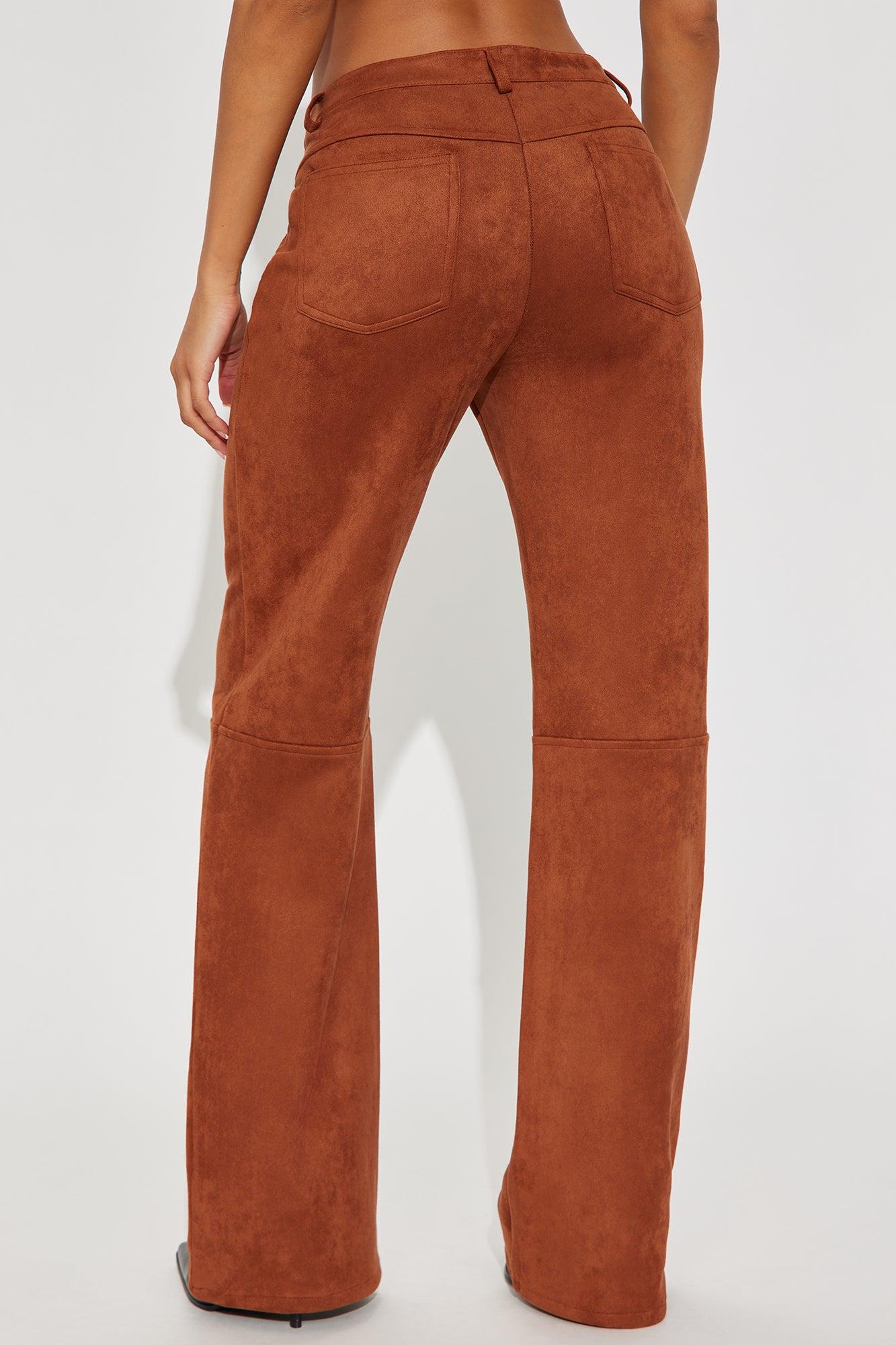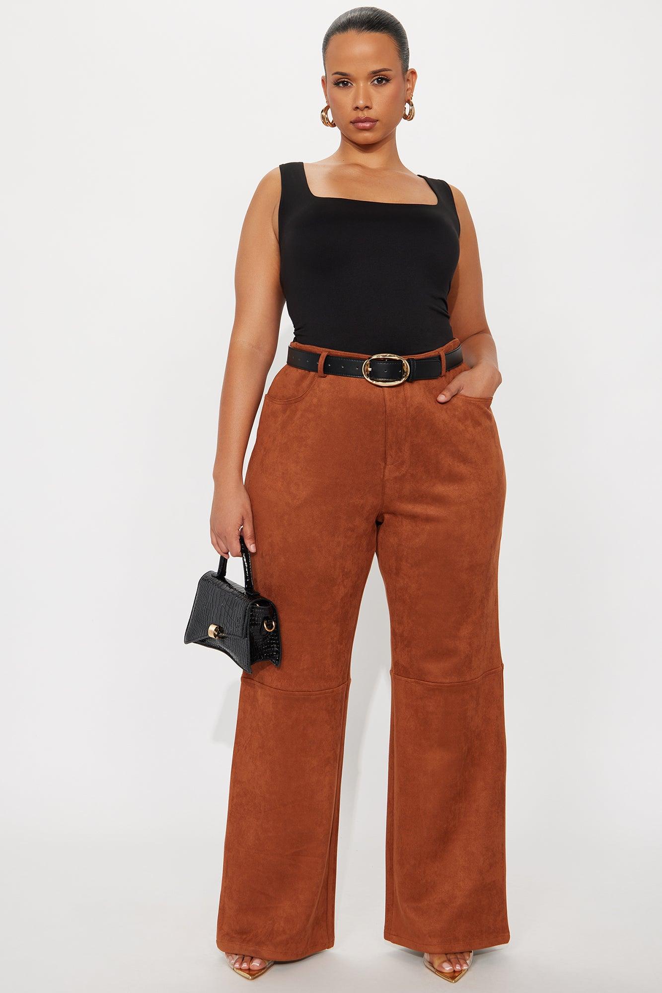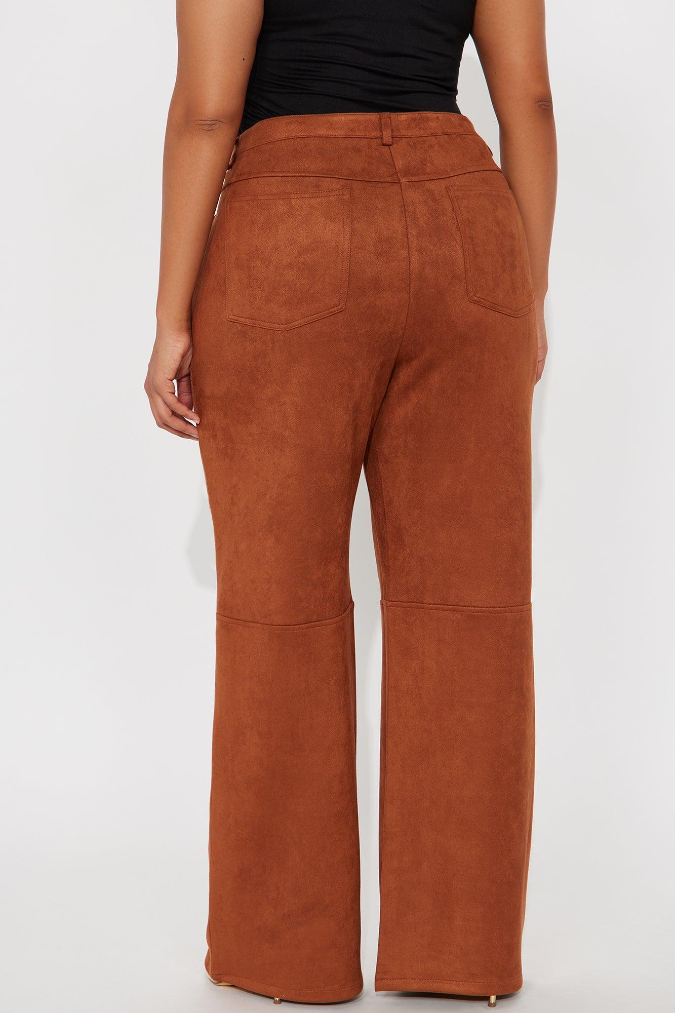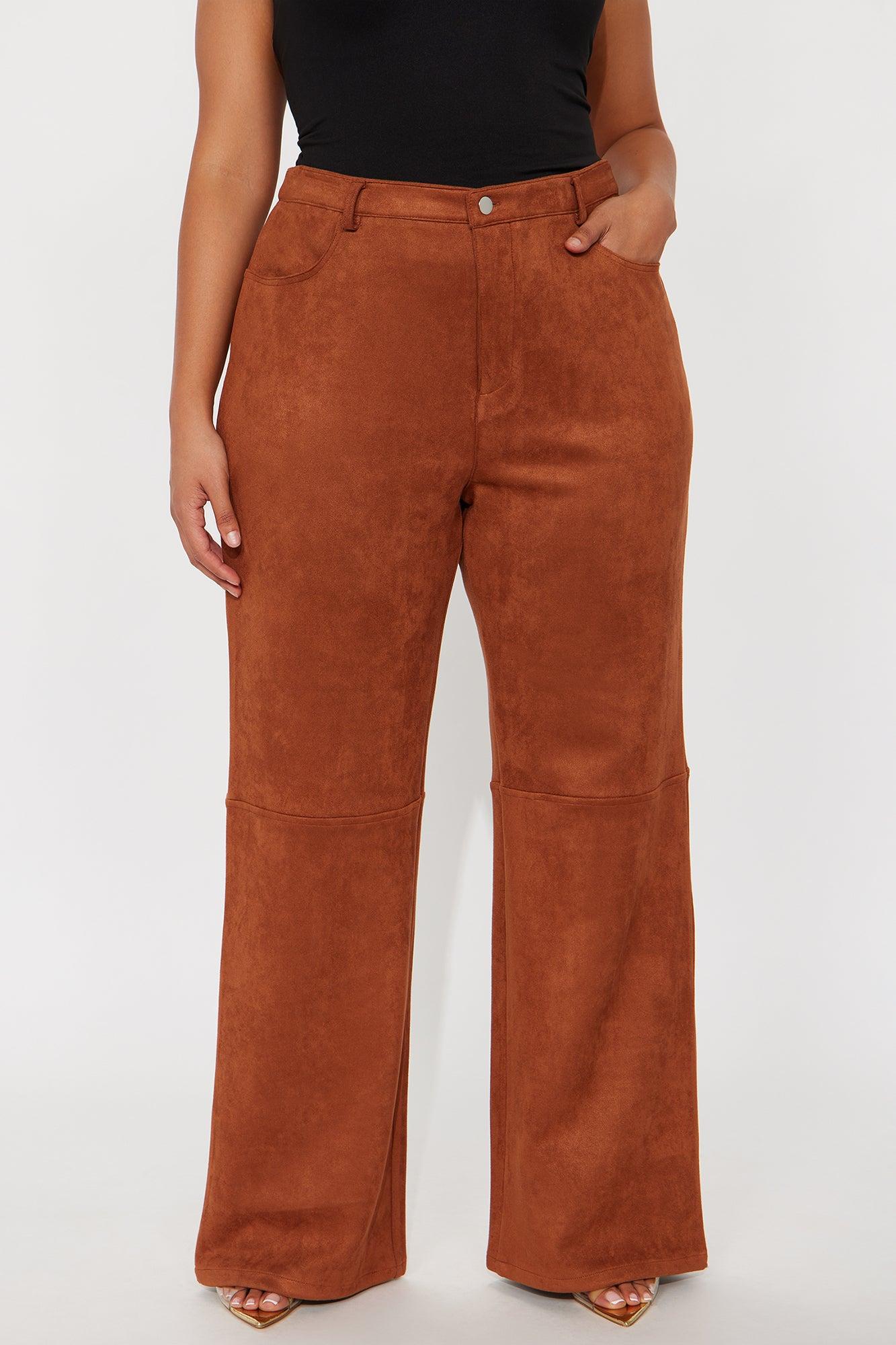 Available In Camel And Wine. Wide Leg Pant Button And Zip Closure High Rise Faux Suede 33" Inseam Pockets Non Stretch Self: 90% Polyester 10% Spandex Imported California Proposition 65WARNING: Cancer and Reproductive Harm - www.P65Warnings.ca.gov.