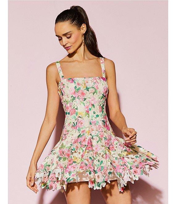 Gianni Bini Alice Floral Eyelet Square Neck A-Line Dress