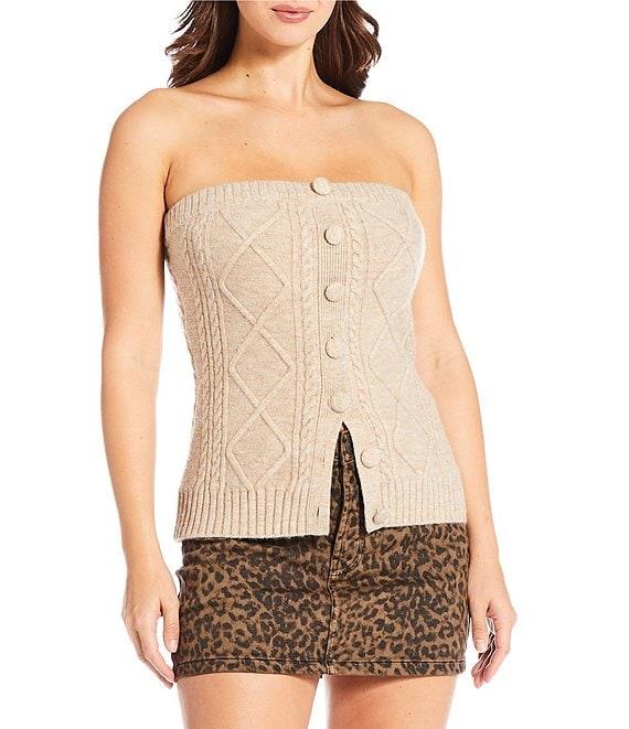 From Gianni Bini, this top features: Wool blend fabrication Tube top silhouette Strapless Sleeveless Straight hemline Pullover construction Button front detail Approx. 18.25" in length Acrylic/polybutylene/nylon/wool Hand wash cold Imported. Dillard's Exclusive.