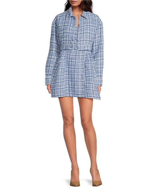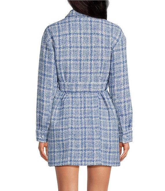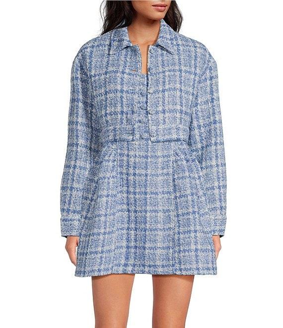 From Gianni Bini, this jacket features: Tweed fabrication Long sleeve Point collar Front pockets Button front closure Approx. 15" Polyester Dry clean Imported.