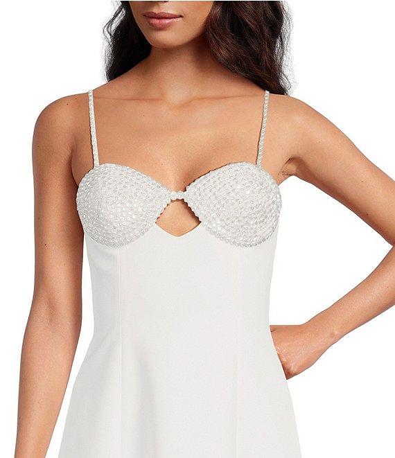 From Gianni Bini, this dress features:Crepe fabricationA-line silhouetteSweetheart necklineSleevelessSequin detailingStraight hemlineCenter zip back and hook closureApprox. 16.5" in lengthPolyester/elastaneDry cleanImported.