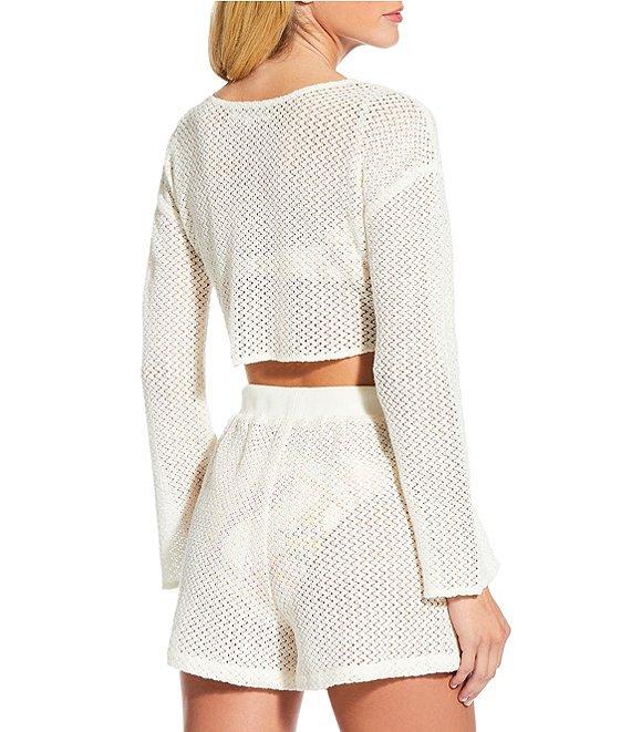 Gianni Bini Crochet Cropped Bell Sleeve Cover-Up Top