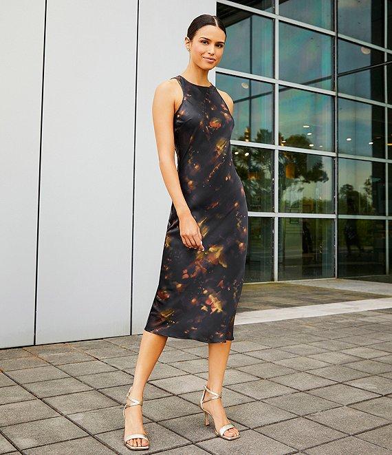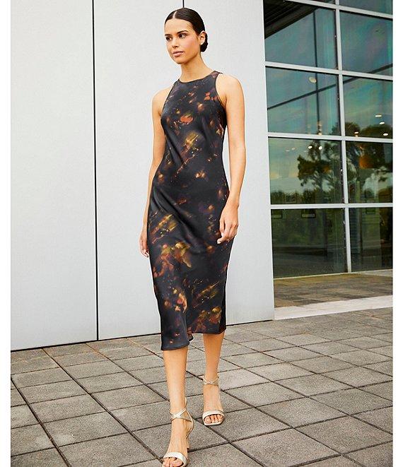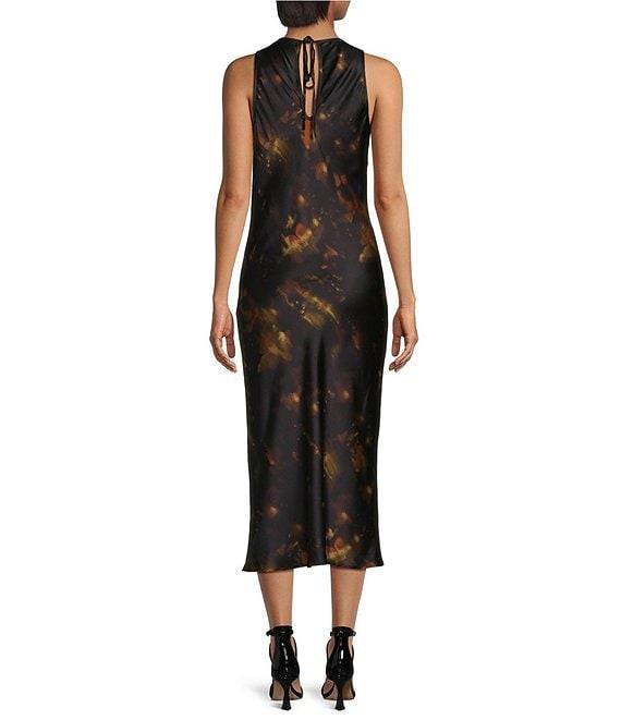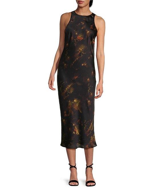 Gianni Bini Fiona Blur Satin Scoop Neck Sleeveless Midi Dress