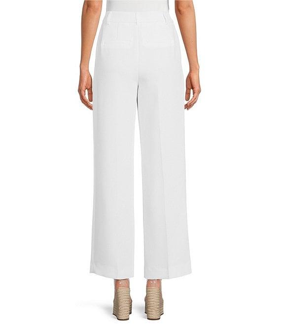 From Gianni Bini, these pants feature:Crepe fabrication High rise waistbandStraight wide leg silhouette 2 front and back pockets Pleated front Front hook and zip closure Approx. 30.5" inseamPolyester Dry clean onlyImported.
