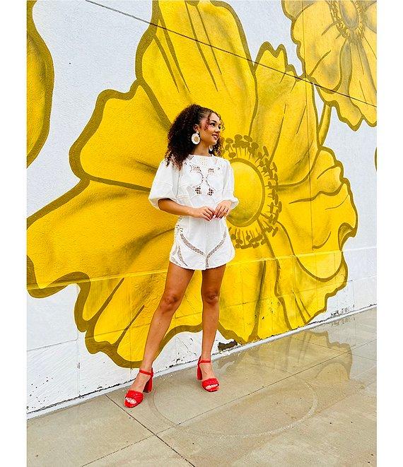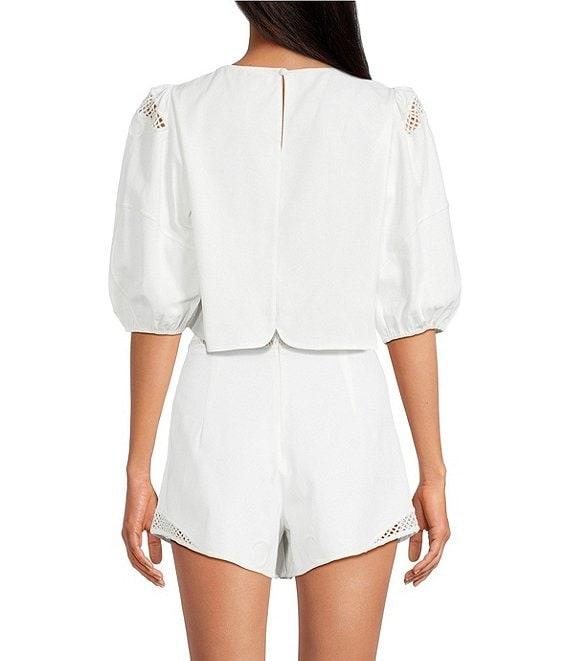From Gianni Bini, this top features: Embroidered cotton fabrication Crew neckline Short sleeve Center back button closure Blouse silhouette Embroidered Crochet detailing Cropped Approx. 15.4" in length Cotton Machine wash cold/dry flat Imported.