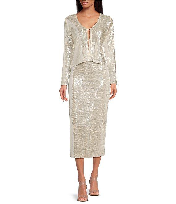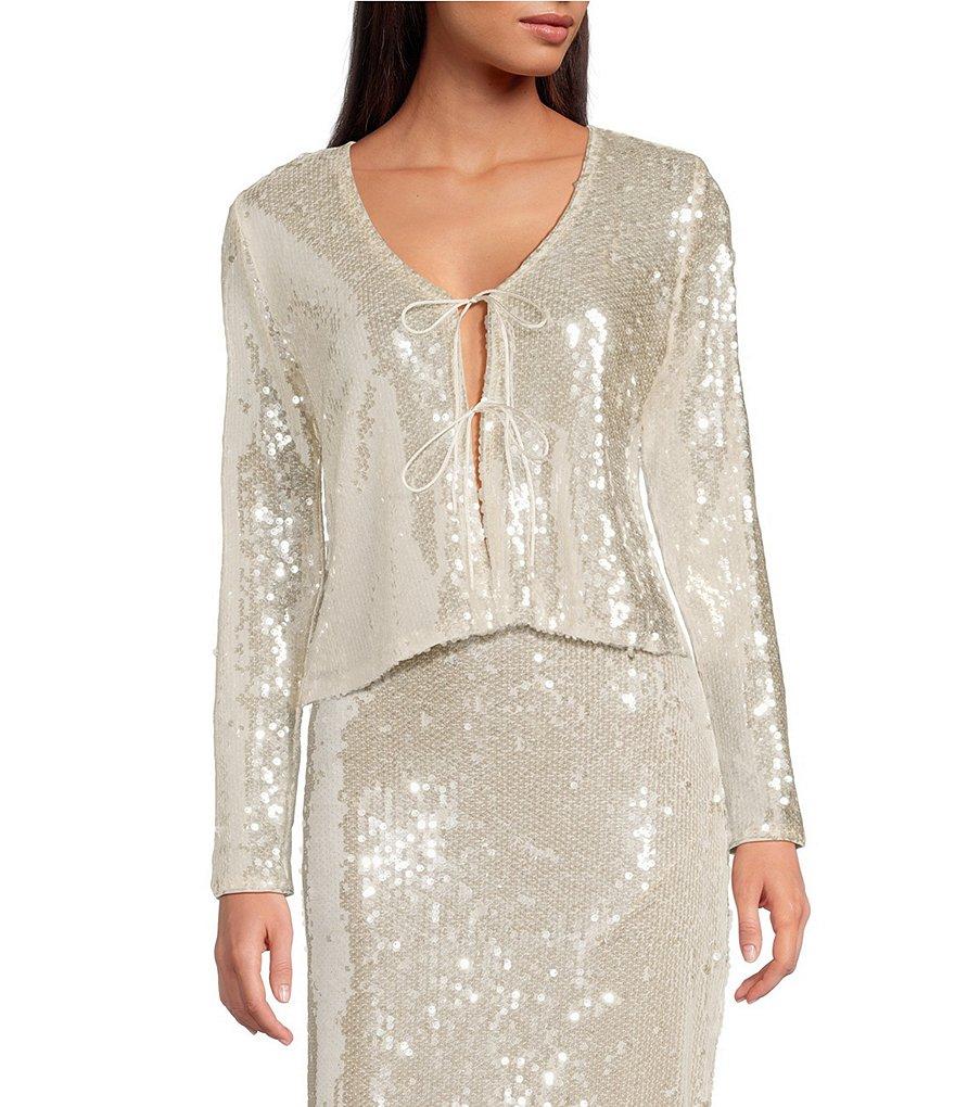 Gianni Bini Kate Sequin V-Neck Long Sleeve Tie Front Coordinating Cardigan