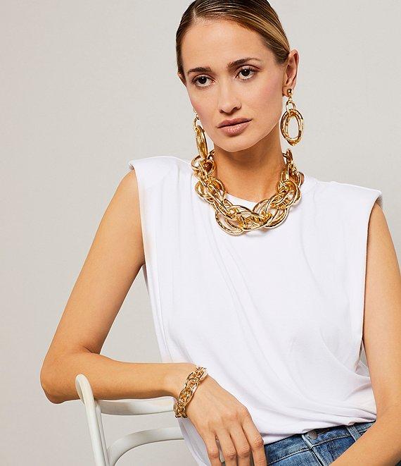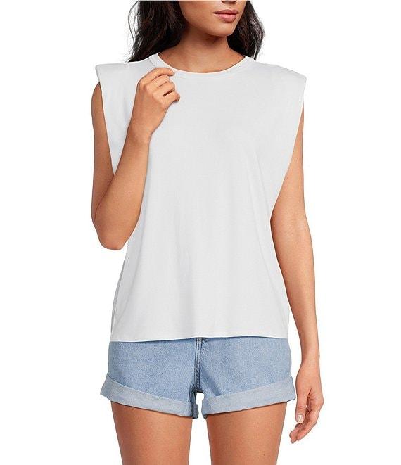 Gianni Bini Kelia Muscle Shoulder Pad Sleeveless Crew Neck Knit Tank
