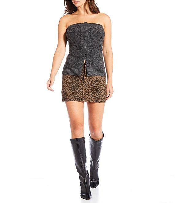 From Gianni Bini, this skirt features: Denim fabrication Leopard print A-line silhouette 5 pocket jean Straight hemline Front zip and button closure Approx. 13" in length Cotton/polyester/elastane Machine wash cold/dry flat Imported. Dillard's Exclusive