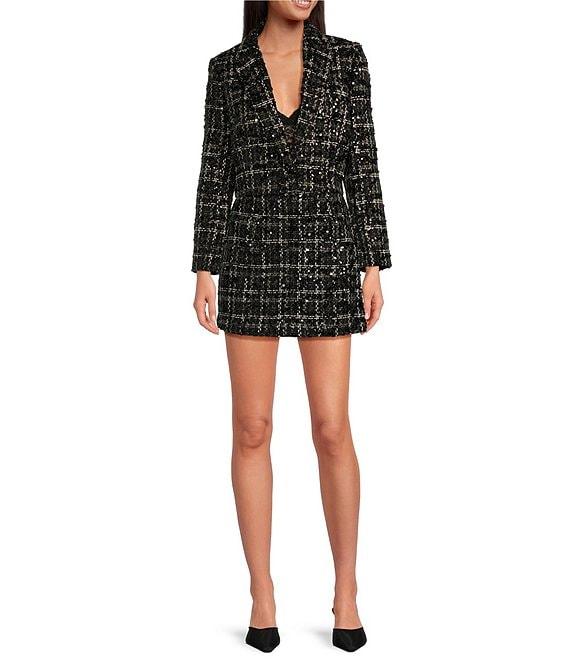 Gianni Bini Sadie Tweed Notch Lapel Button Front Long Sleeve Cropped Blazer