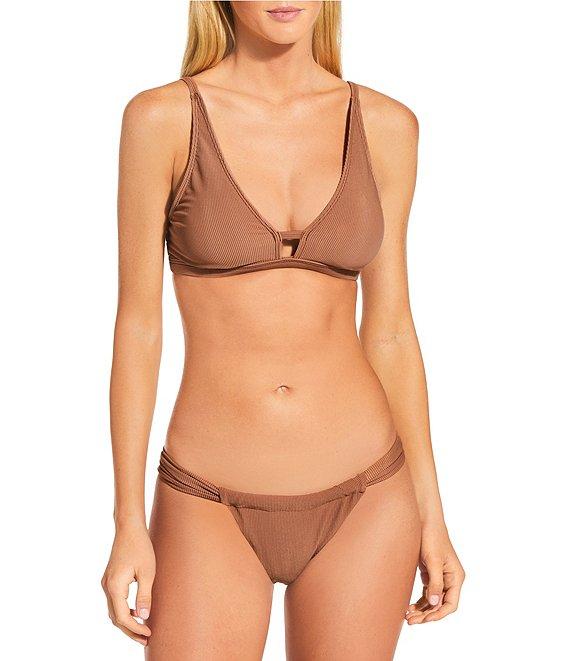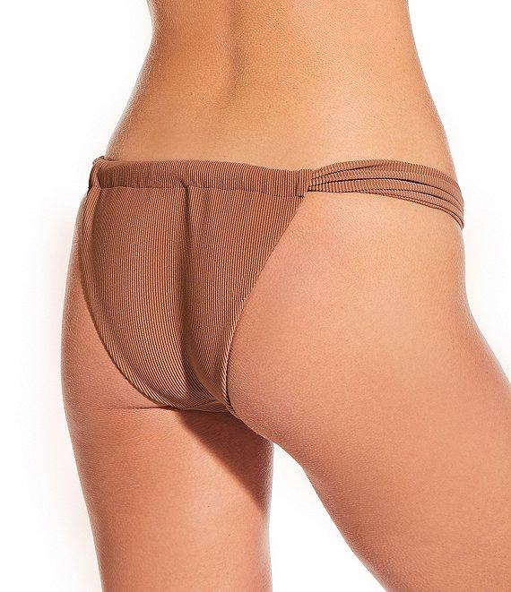 Gianni Bini Solid Ribbed Tanga Scoop Front Swim Bottom