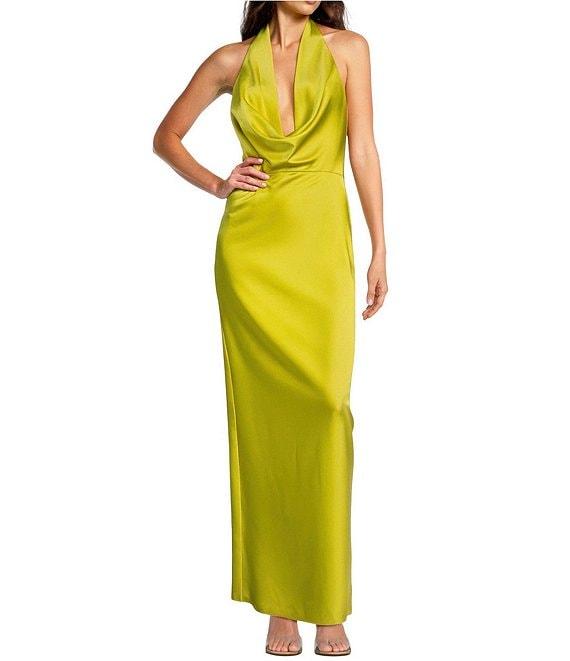 Gianni Bini Tasha Halter Cowl Neck Satin Slip Maxi Dress