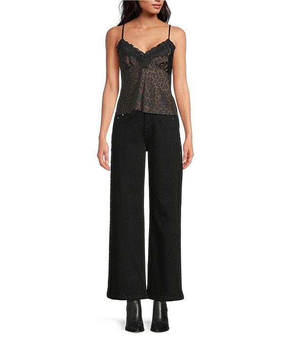 Gianni Bini Violet Studded Wide Leg Denim Jeans