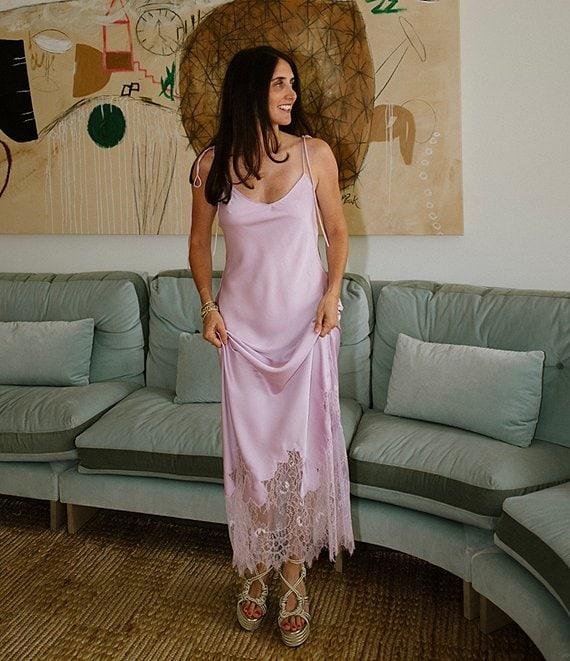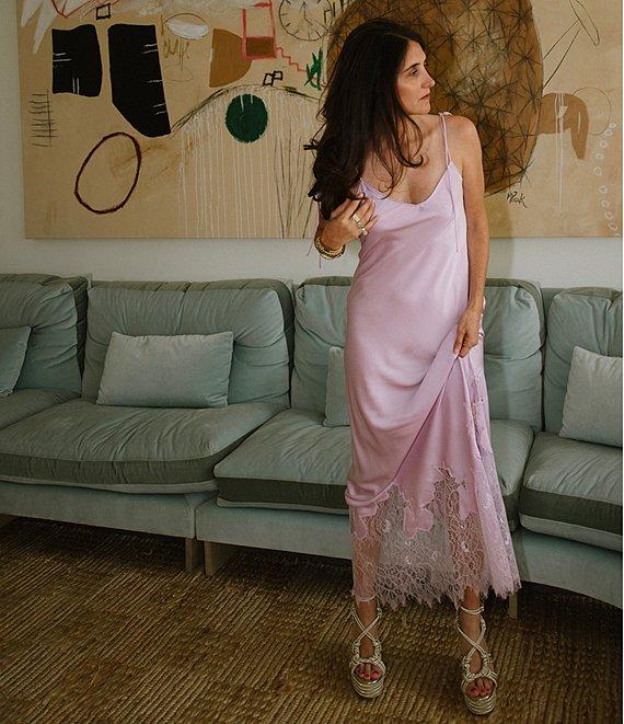 Gianni Bini x DANNIJO Lola Semi Sweetheart Sleeveless Lace Hem Satin Slip Maxi Dress