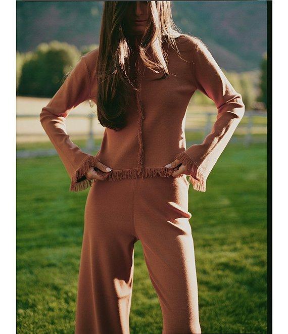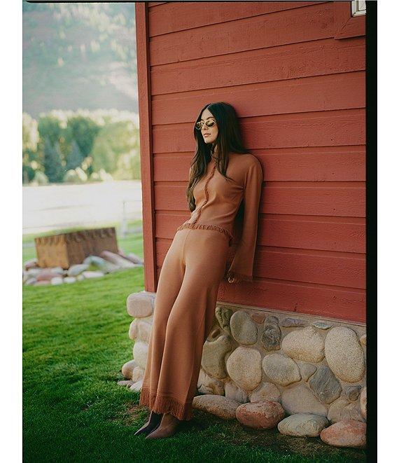 From Gianni Bini x Sydney Silverman, these pants feature: Fine gauge ecrovero blend fabrication Elastic waistband Wide leg silhouette Relaxed fit Pull-on construction Tonal fringe trim detail Approx. 35.25 in length, 25 inseam, 11.5 rise Viscose/polyester Machine wash cold Imported. Dillard's Exclusive