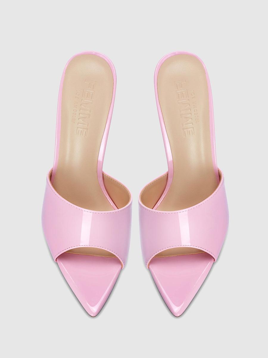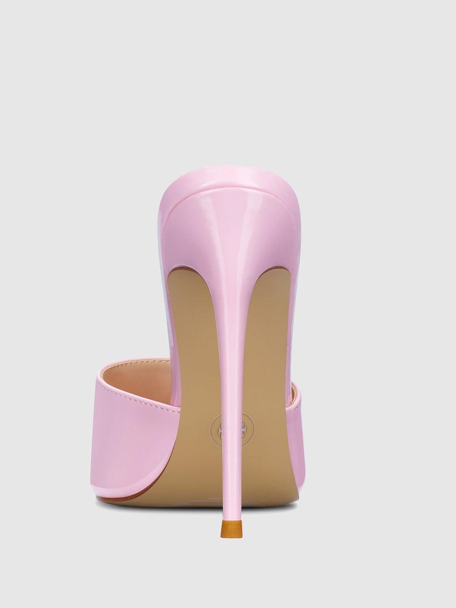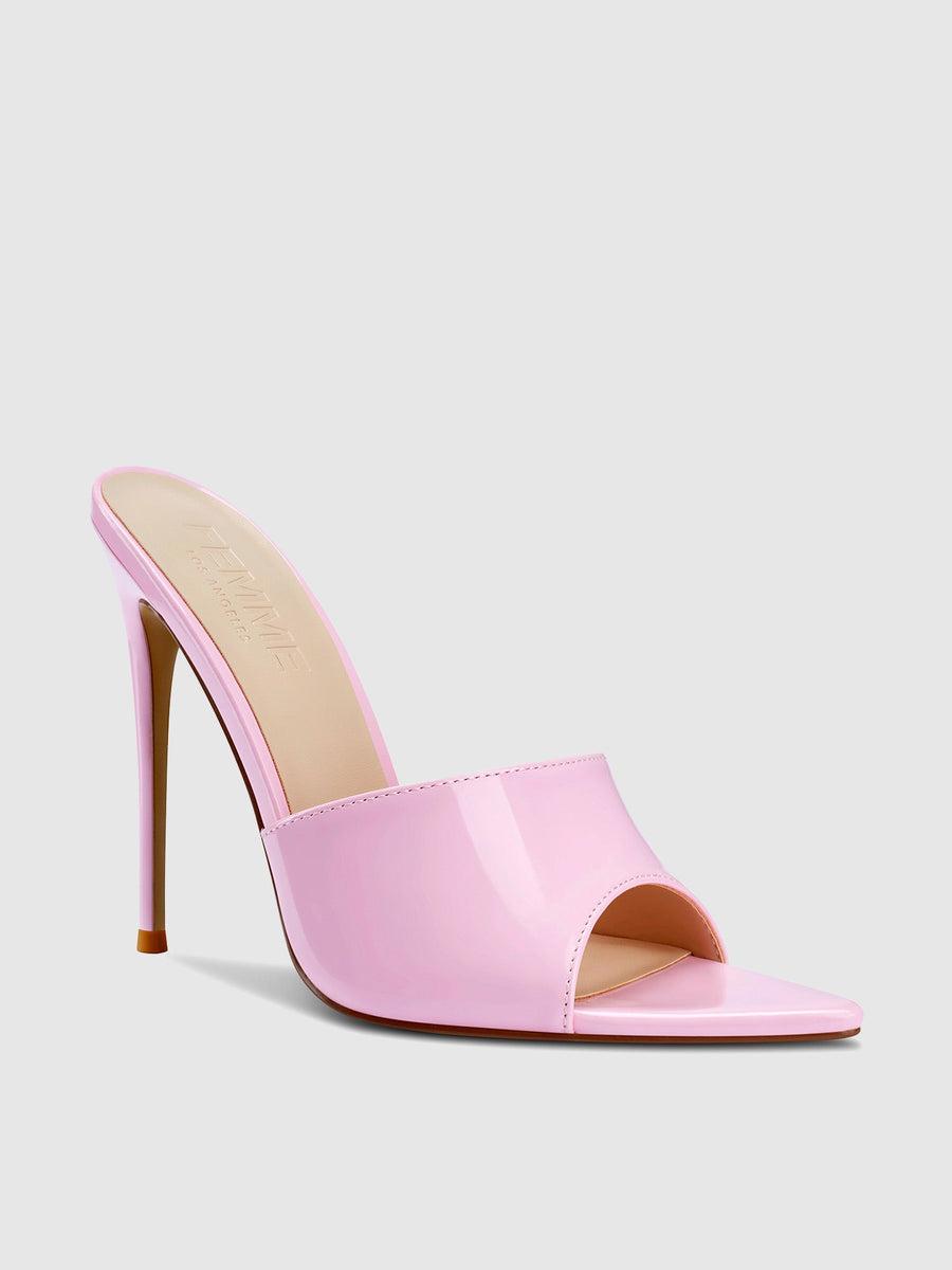 Handcrafted from ethical materials, the Gianni Mule is a glamorous addition to your wardrobe. Featuring a patent leather upper, this mule is effortlessly styled for any occasion. PVC upperVegan insoleVegan outsoleOpen pointed toeSlip-onHandmadeDesigned in LA Self-covered stiletto heel, 4.75" (120mm)