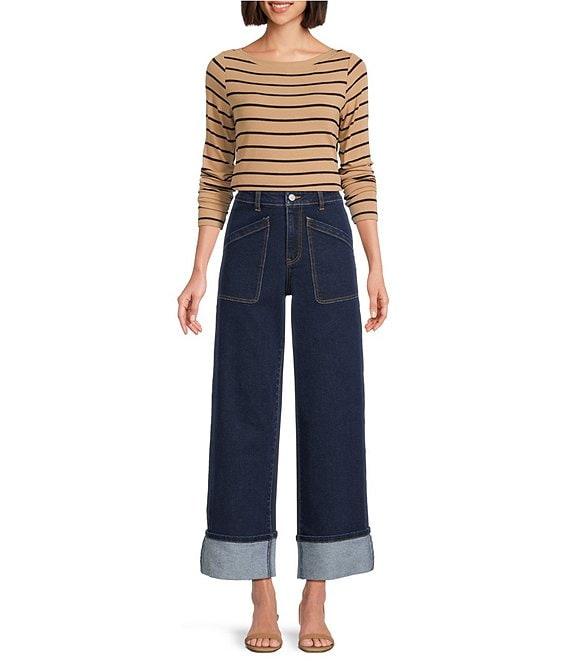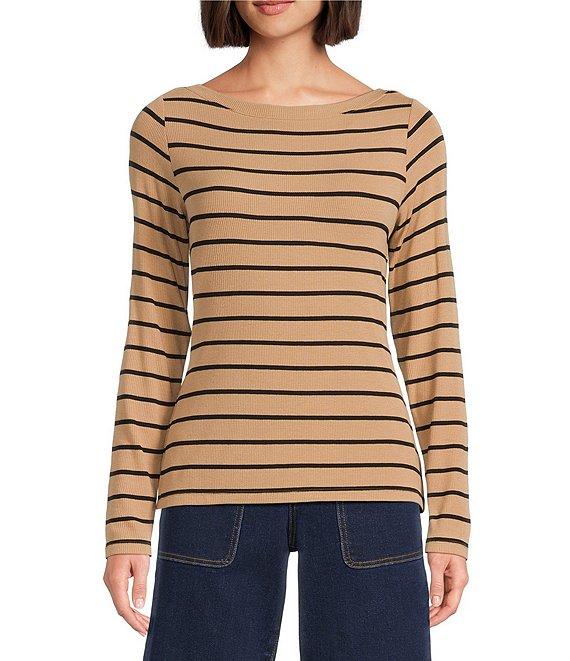 From Gibson & Latimer, this tee shirt features: Knit fabrication Boat neckline Long sleeves Horizontal stripe print Pullover construction Classic fit Straight hemline Pullover construction Approx. 24" HPS in length Polyester, spandex Machine wash Imported. Dillard's Exclusive.