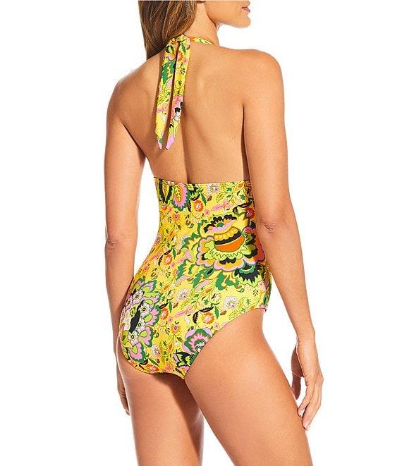 Gibson & Latimer Summer Flavor Wide Band V-Neck Halter One Piece Swimsuit