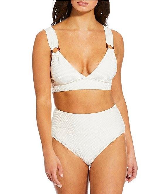 Gibson & Latimer Textured Banded High Waisted Swim Bottom