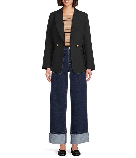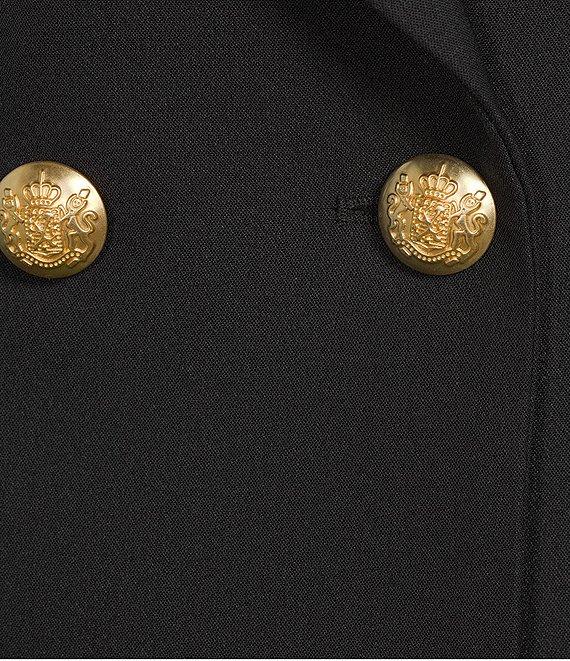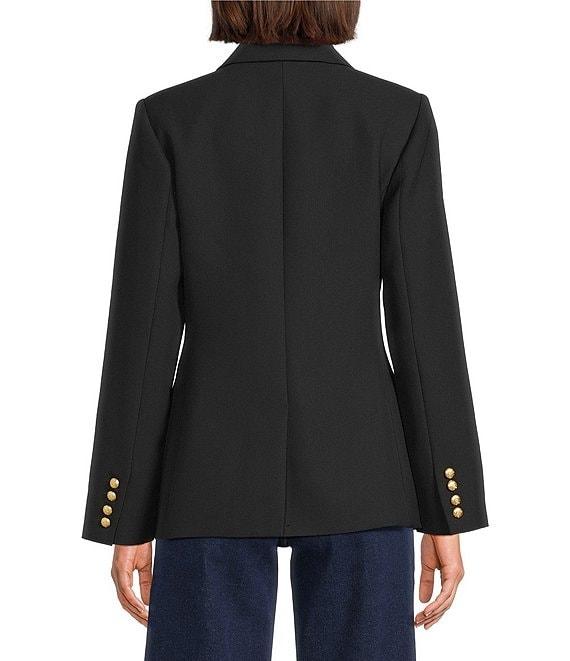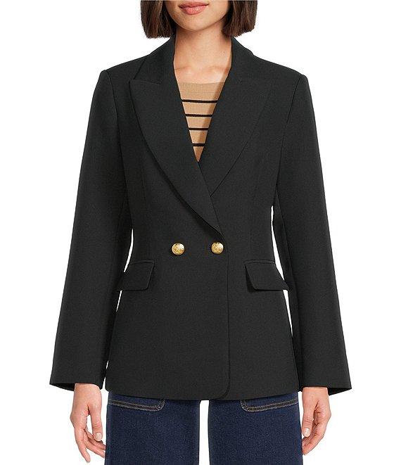 From Gibson & Latimer, this blazer features: Woven fabrication Double breasted silhouette Notch lapel collar Long sleeves Double front flat pockets Classic fit Fixed lining Straight hemline Mid length Embellished button front closure Approx. 27" HPS in length Polyester Professional dry cleaning only Imported. Dillard's Exclusive.