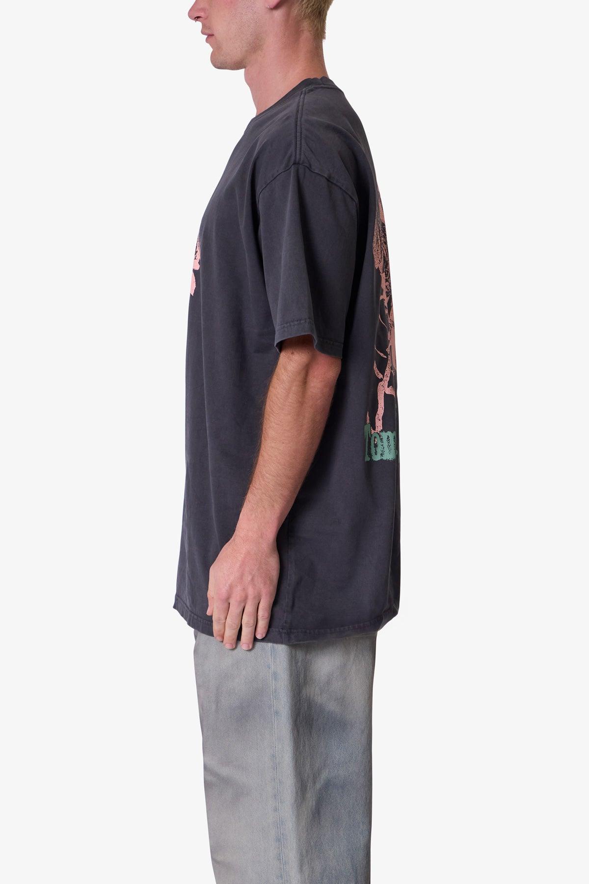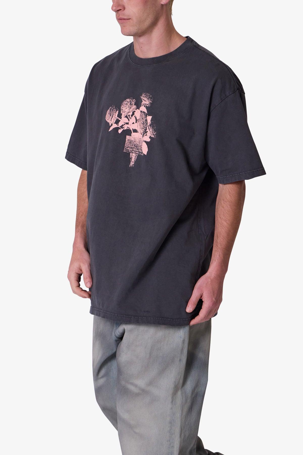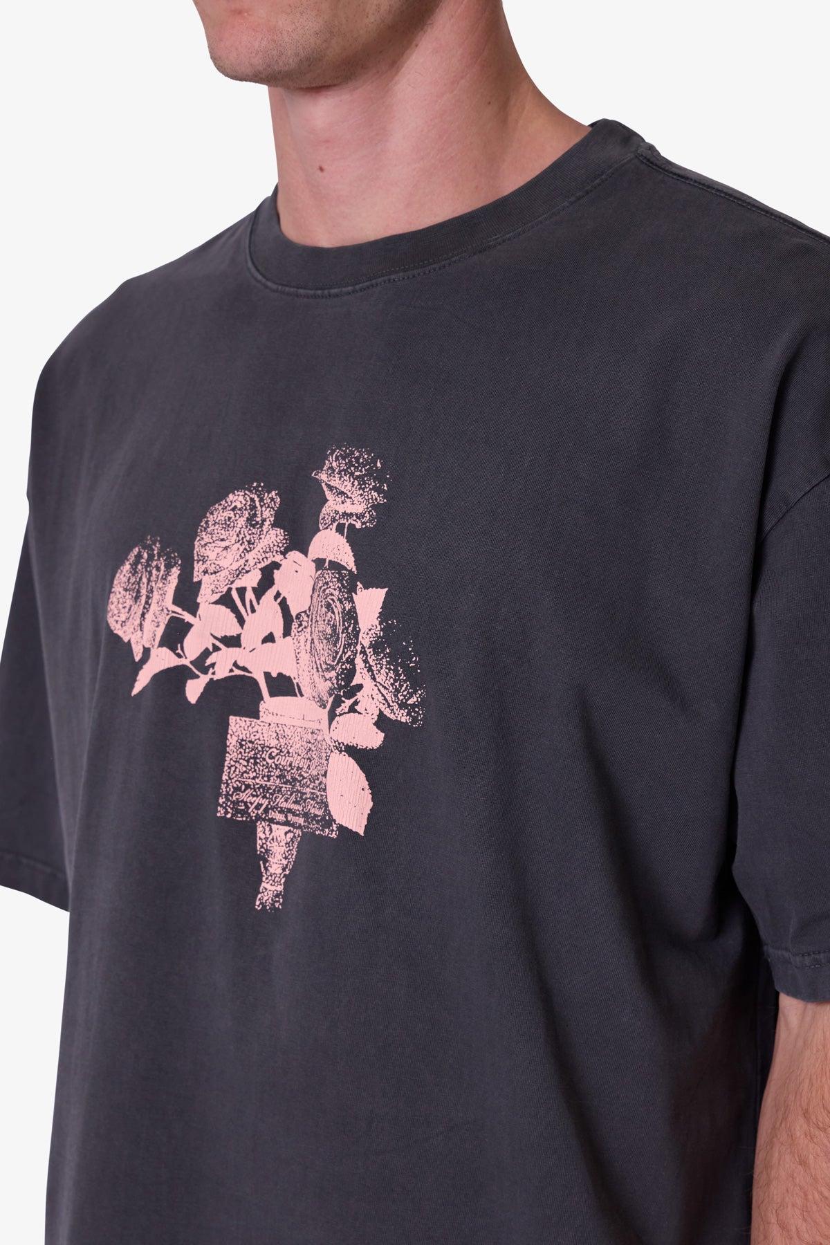 the Gift Tee features a relaxed and boxy fit, ribbing at the neck, a standard hem, printed graphics on the front and back, and finished with a garment dye for a vintage feel. Details relaxed fit 100% cotton fabric model is 6’0, 140 lbs and wears a size medium