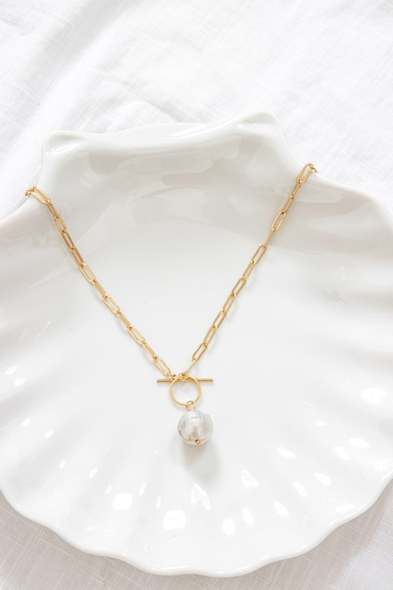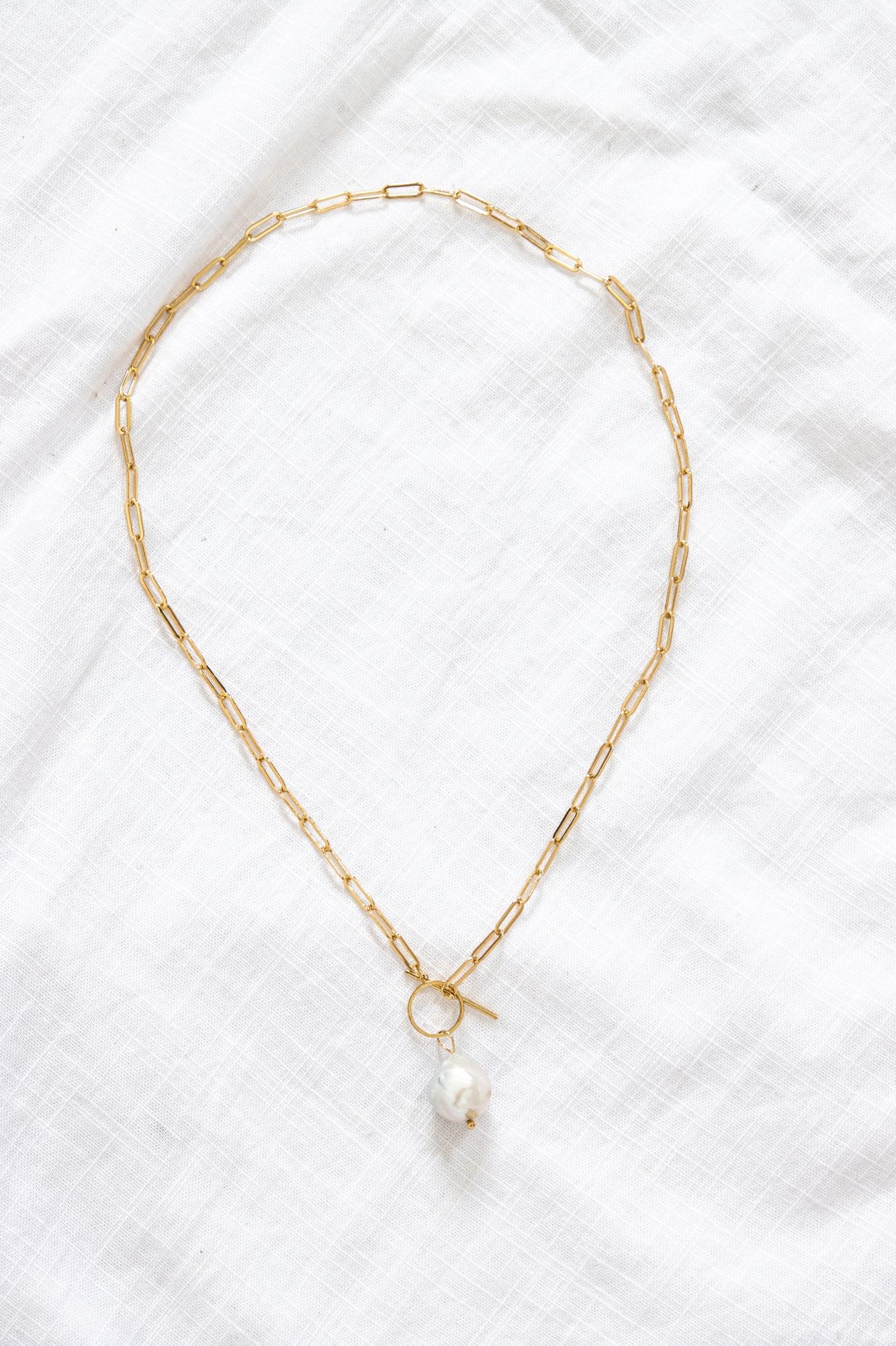 Gold cable chain necklace. Metal construction. True to size. Top chain length: 46cm. Slender cable chain style. T-bar closure. Please Note: Avoid contact with water, perfume and lotions. Doing a bit of online browsing? Why not buy yourself presents and add the Gift To Myself Necklace to your shopping cart! This little accessory is a definite luxe addition to the jewellery box with its slender cable chain style and statement pearl pendant!
