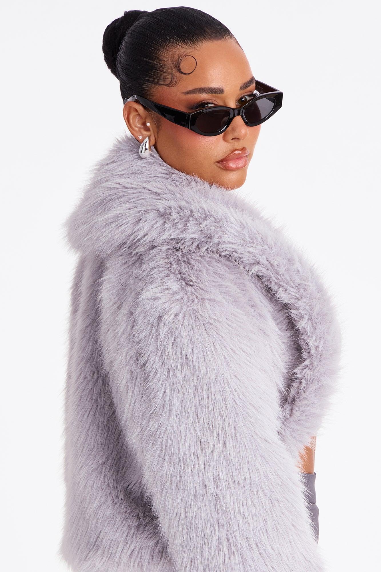 Available In Black, Cream, Grey, Light Blue, Mocha And Plum. Coat Collar Long Sleeve Faux Fur Cropped Fully Lined Self/ Faux fur/Lining: 100% Polyester Imported California Proposition 65WARNING: Cancer and Reproductive Harm - www.P65Warnings.ca.gov.