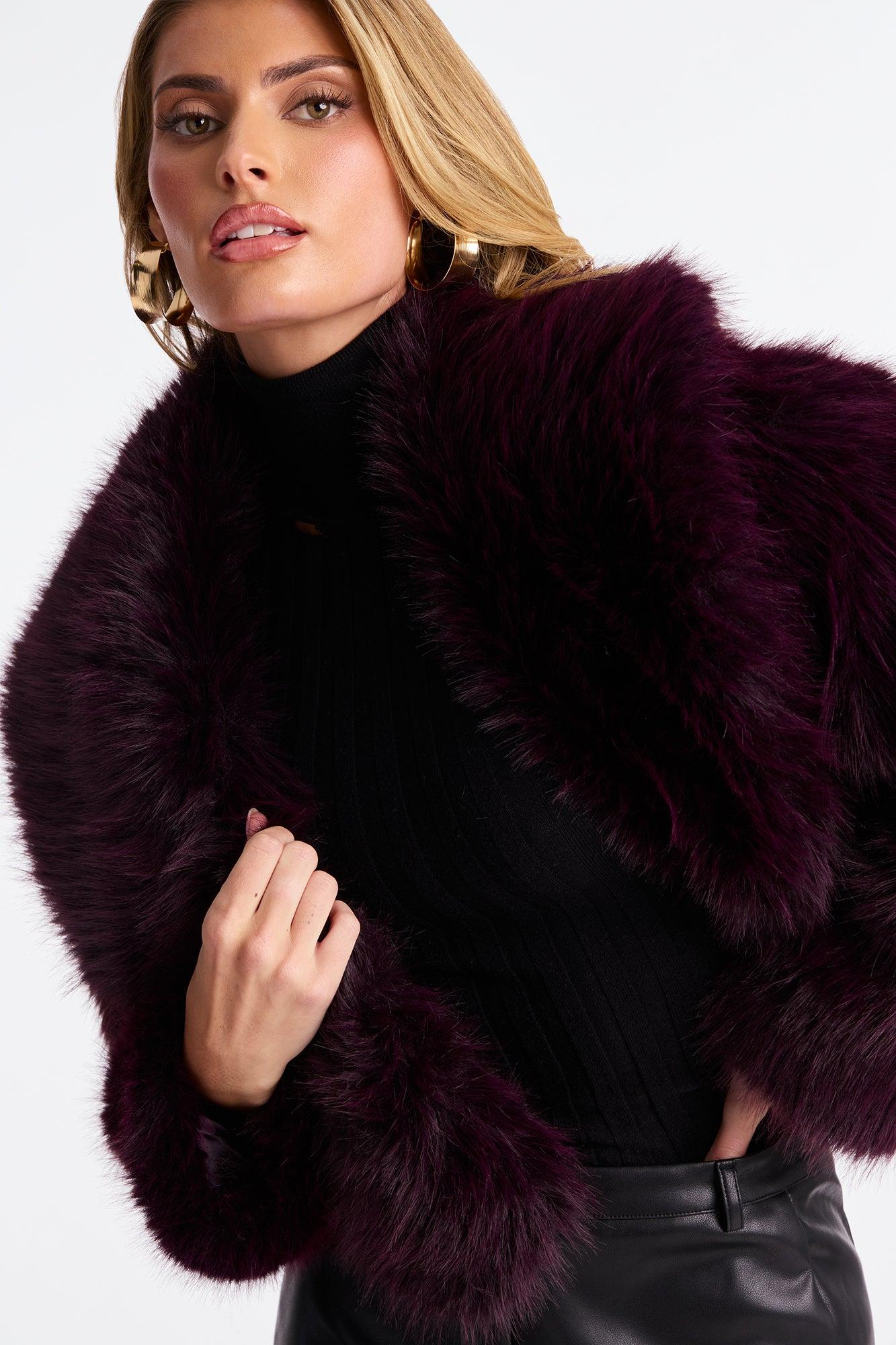 Available In Black, Cream, Grey, Light Blue, Mocha And Plum. Coat Collar Long Sleeve Faux Fur Cropped Fully Lined Self/ Faux fur/Lining: 100% Polyester Imported California Proposition 65WARNING: Cancer and Reproductive Harm - www.P65Warnings.ca.gov.