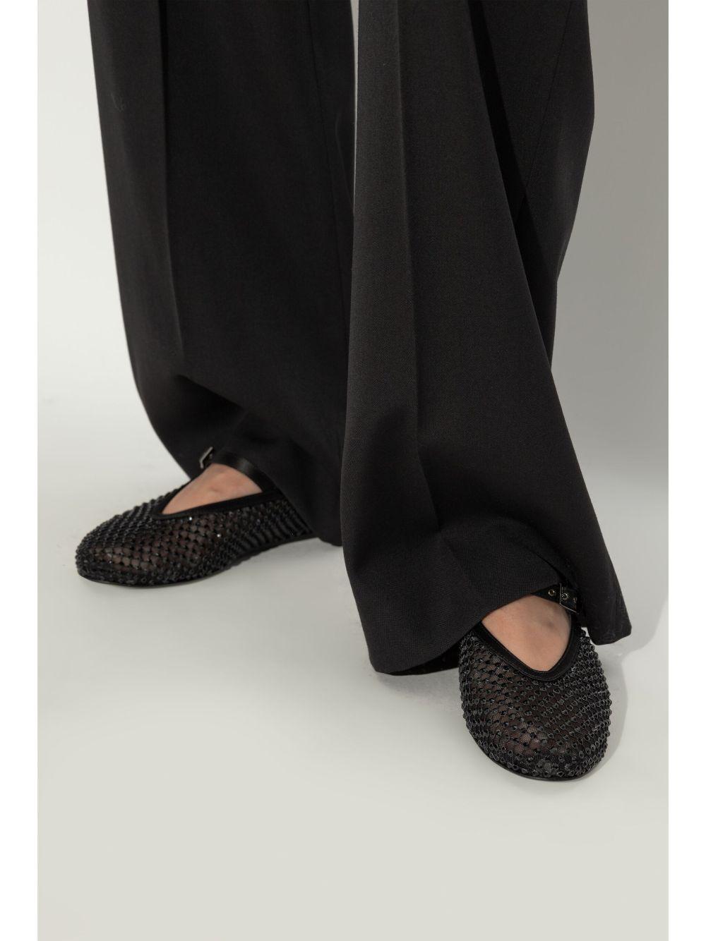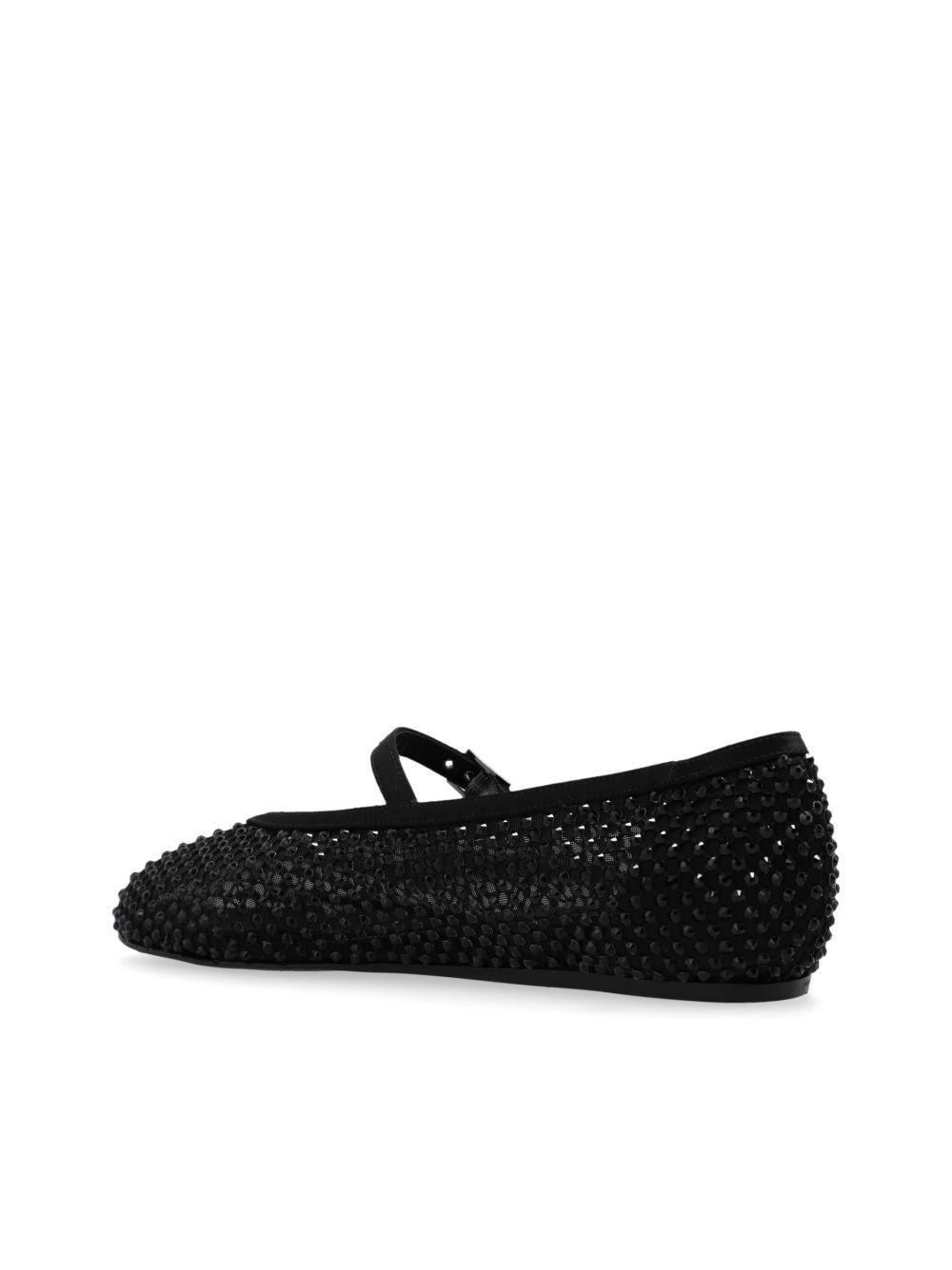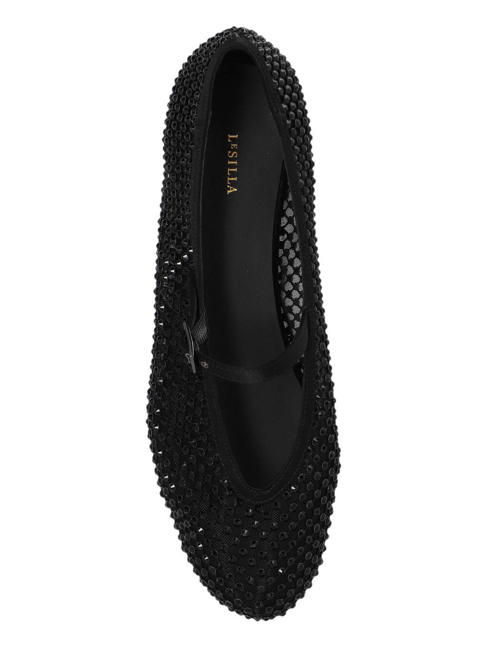 Le Silla Gilda crystal-embellished ballerina shoes | Black | black | mesh design | crystal embellishment | buckle-strap fastening | round toe | branded leather insole | flat leather sole | Nappa Leather/Crystal/Nylon/Leather | Ballet Flats | Shoes | Women