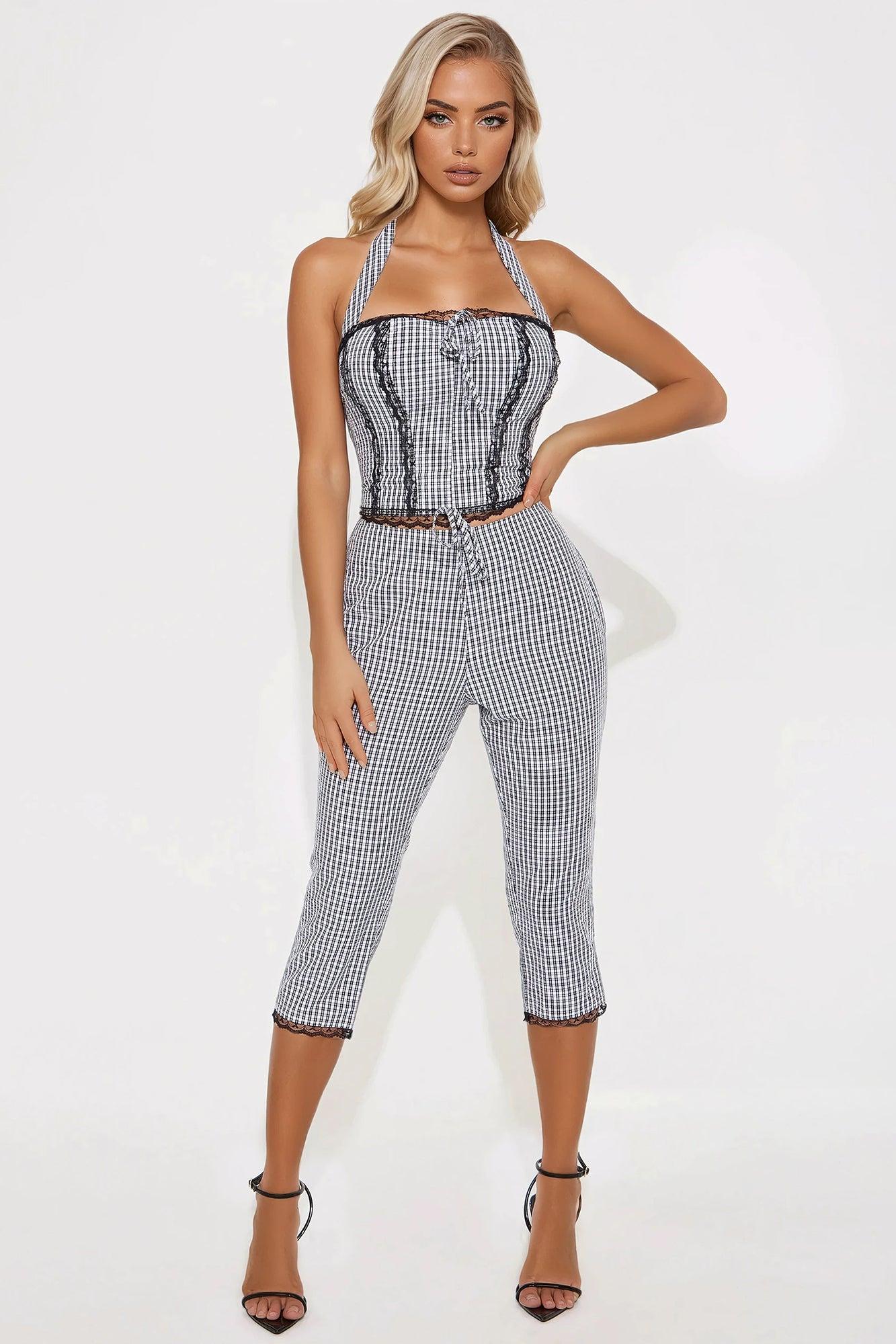 Gillian Gingham Capri Set - Black/White